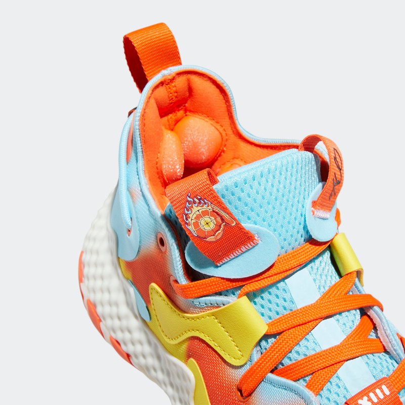 细节方面,除了鞋头、后跟和鞋舌处的哈登个人 Logo 外,还在另一个鞋舌提环上妆点了一颗被投出的火球。