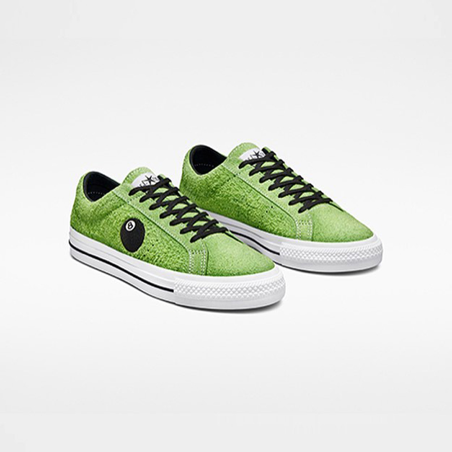 本次共有 Chuck 70 与 One Star 两款,特别值得一提的是,鞋身两侧均有象征着 Stüssy 的黑 8 元素融入其中。