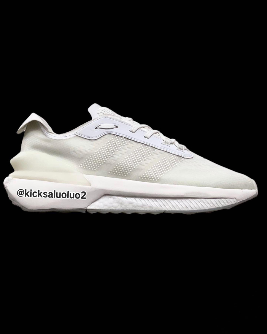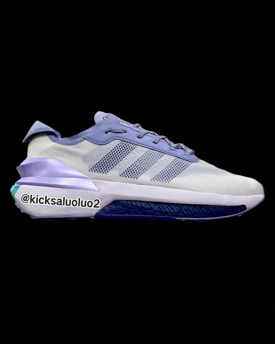 从曝光图中可以看到,整双鞋在外观上呈流线型,前掌中底辅以 Boost 加持。