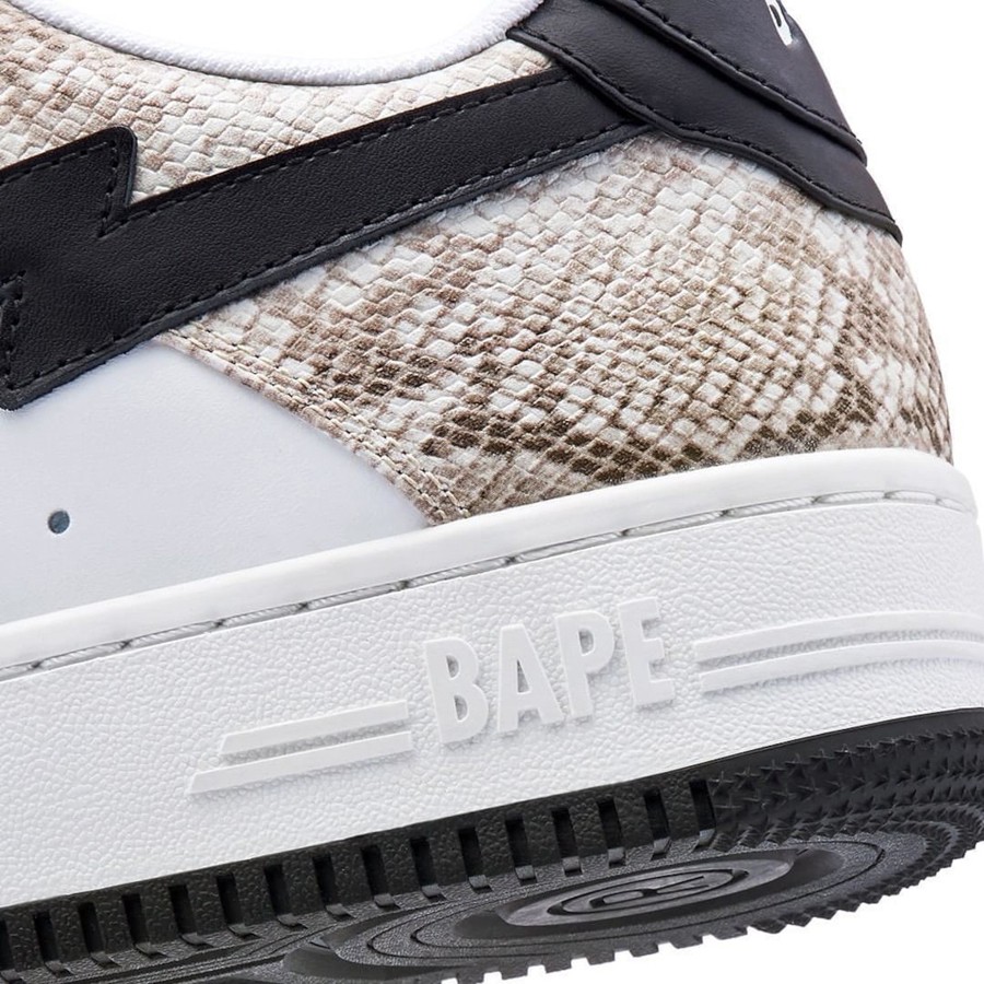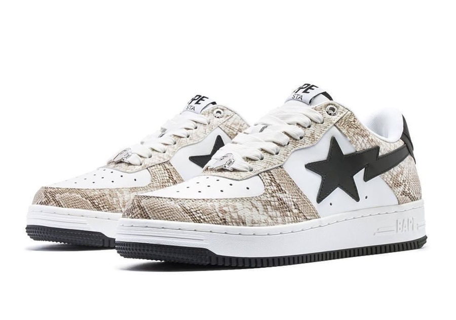 BAPE 旗下的鞋款 BAPE STA 迎来新品曝光! 选用类似蛇皮纹路面料构造鞋面。营造出相当奢华的既视感。 细节上,鞋带孔与猿人头鞋带扣选用金属质感材料打造,突显出众质感。 据悉,此次鞋款颜色共有两种,预计将于 11 月 5 日迎来正式发售,国内大概率也将同步发售,喜欢的朋友不妨持续关注我们的后续报道。 BAPE STA™ “Snakeskin” 发售日期:11 月 5 日