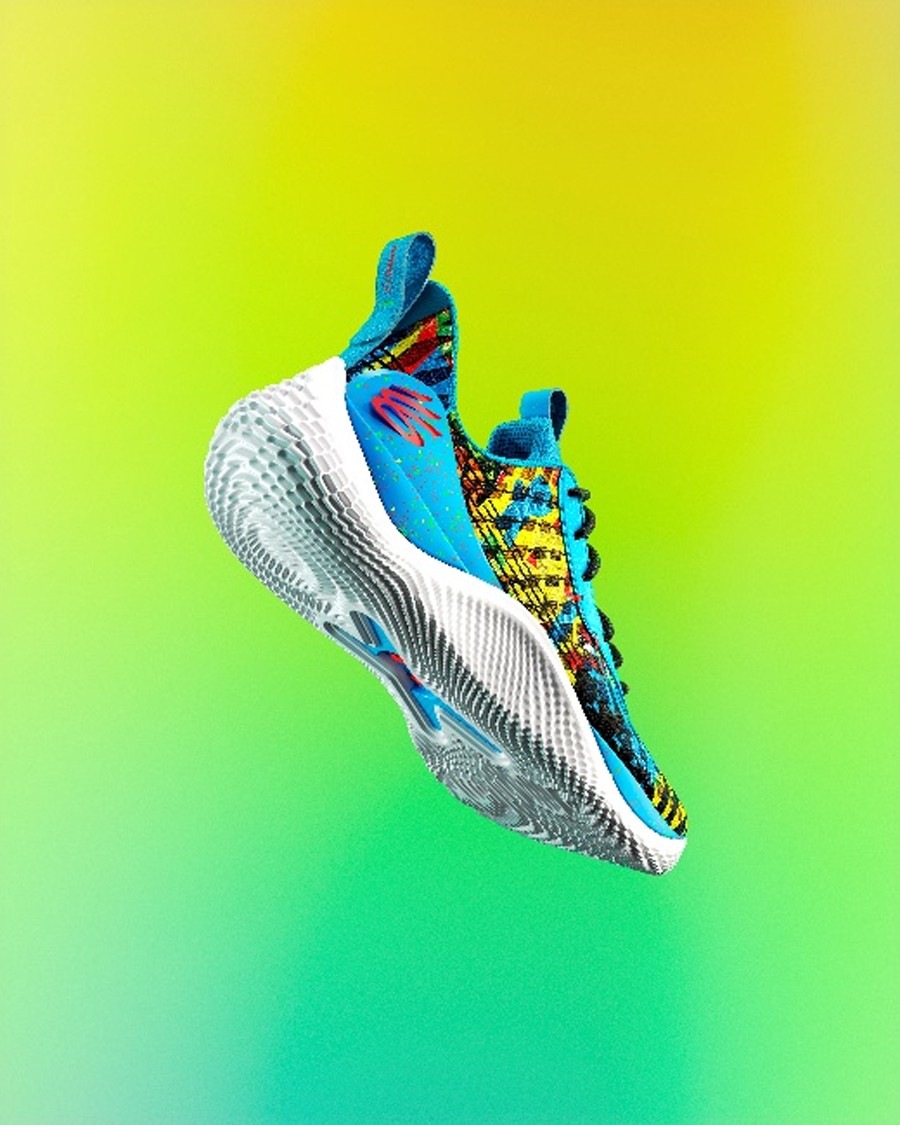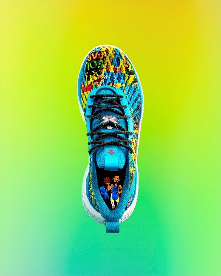 侧身与鞋垫上分别点缀了「SOUR THEN SWEET」字样和 Curry 卡通图案,进一步显示出了配色身份。