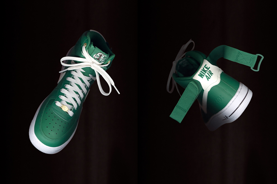第一双以「纽约」为主题进行创作,纯白的鞋身搭配上黑色 Swoosh Logo,令整体造型十分简约,鞋带扣分别点缀金色的 “1973” 和 “1982” 字样,提亮了鞋身。