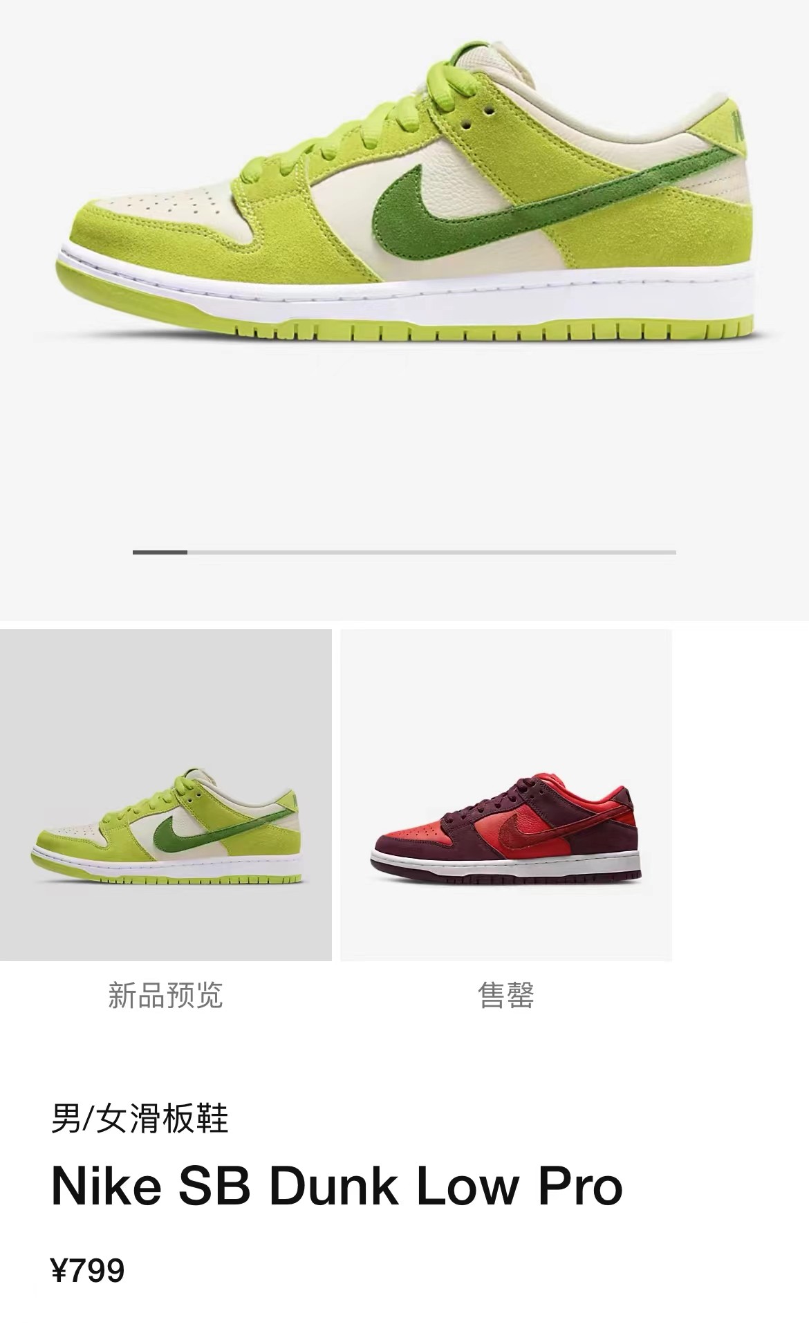 作为「水果」系列配色的一员,「苹果」Nike SB Dunk Low 算的上是最受欢迎的一款配色了。