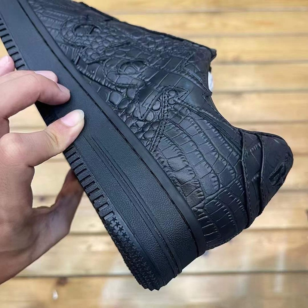 仔细观察会发现,鞋面材质的规格相当高,以鳄鱼皮纹理呈现。