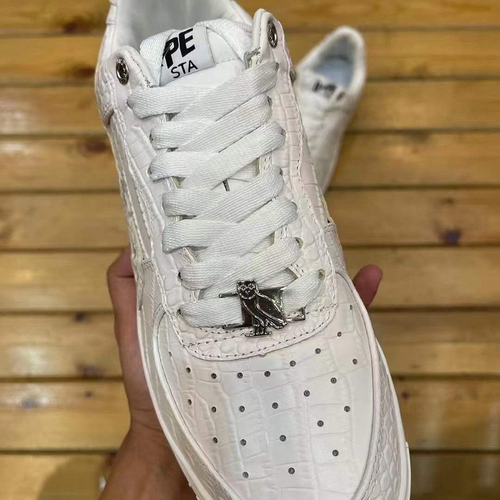鞋侧装饰有 OVO 和 BAPE 五角星融合的 Logo,彰显鞋款联名身份。