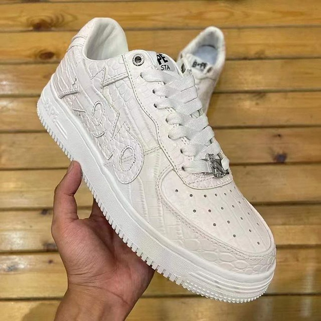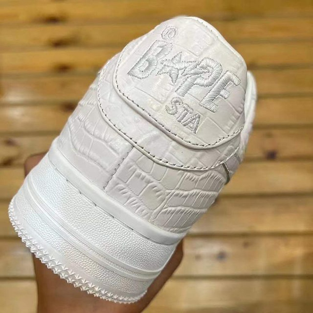 双方选择了备受大家喜爱的 BAPE STA 鞋型,整双鞋以纯白配色方案打造,拥有不错的搭配属性。