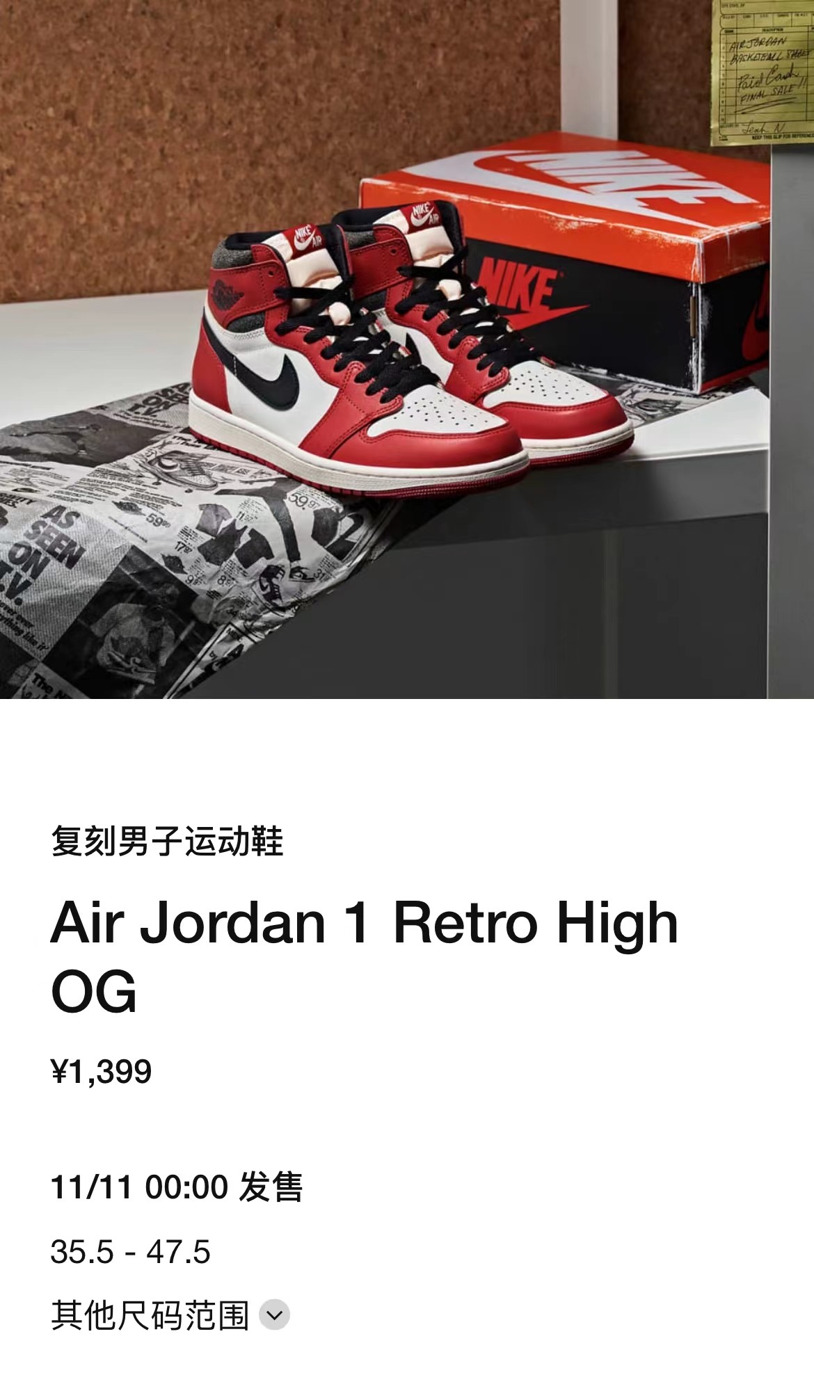 没有中的小伙伴不要慌,在本周五 11 月 11 日「芝加哥」Air Jordan 1 将在 SNKRS 中国 APP 正式发售!