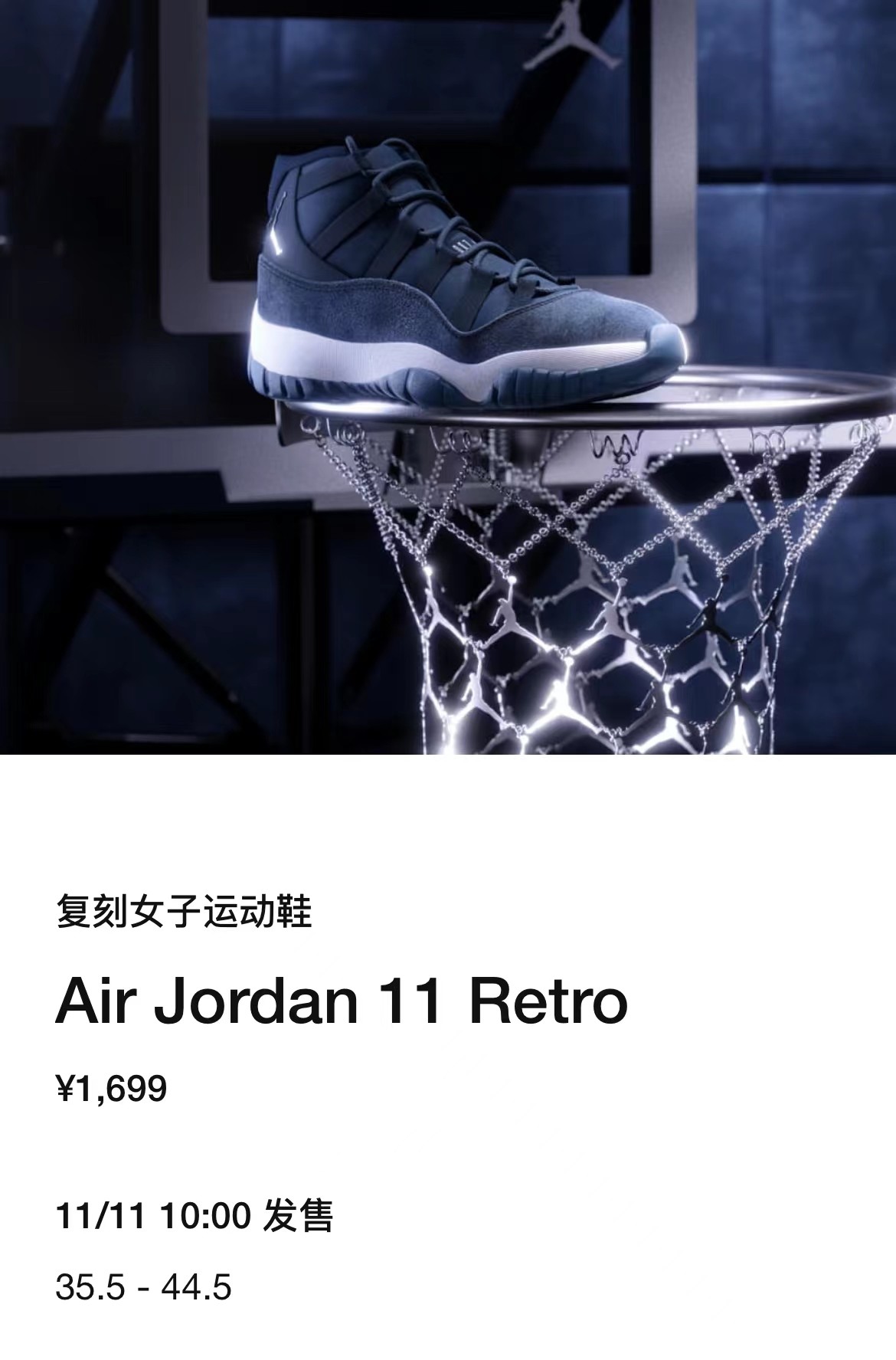 目前,这款 Air Jordan 11 Retro “Midnight Navy” 现已上架 SNKRS 中国 APP,将于 11 月 11 日上午 10 点正式发售。