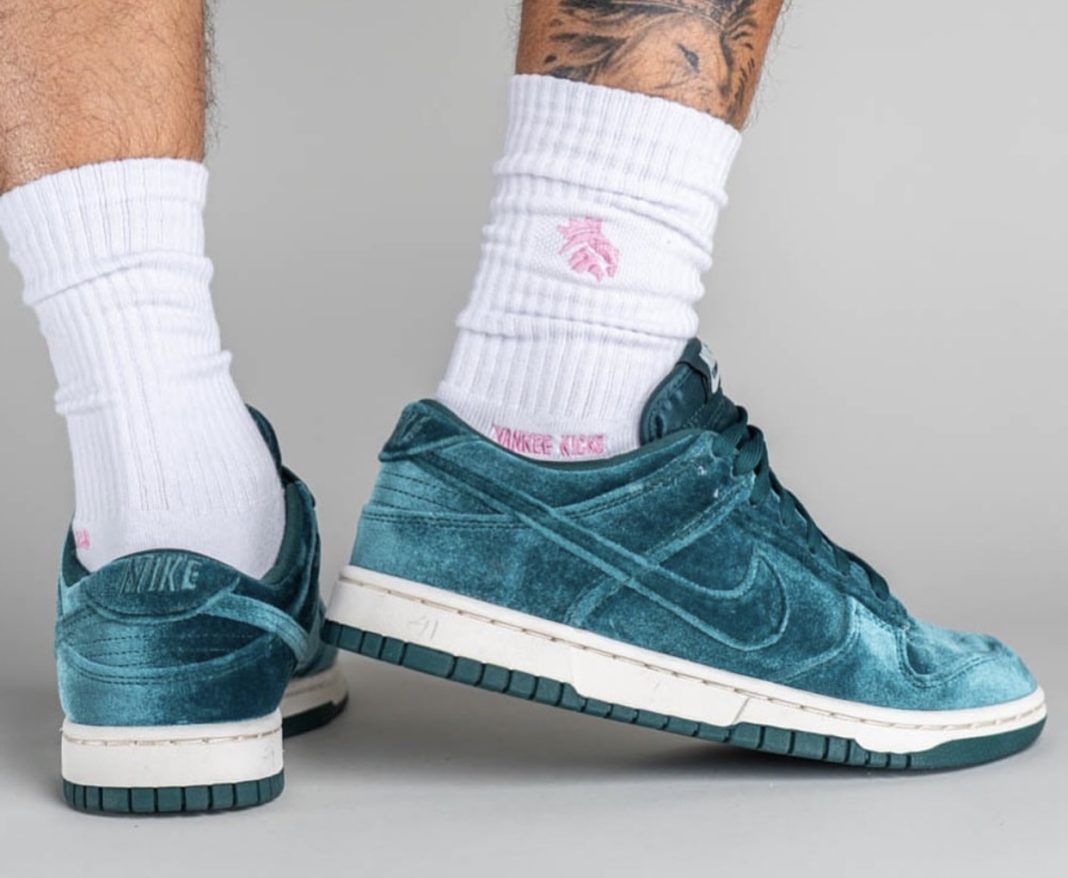 近日,又一款天鹅绒材质 Dunk Low 释出上脚图,确认将于今年发售。