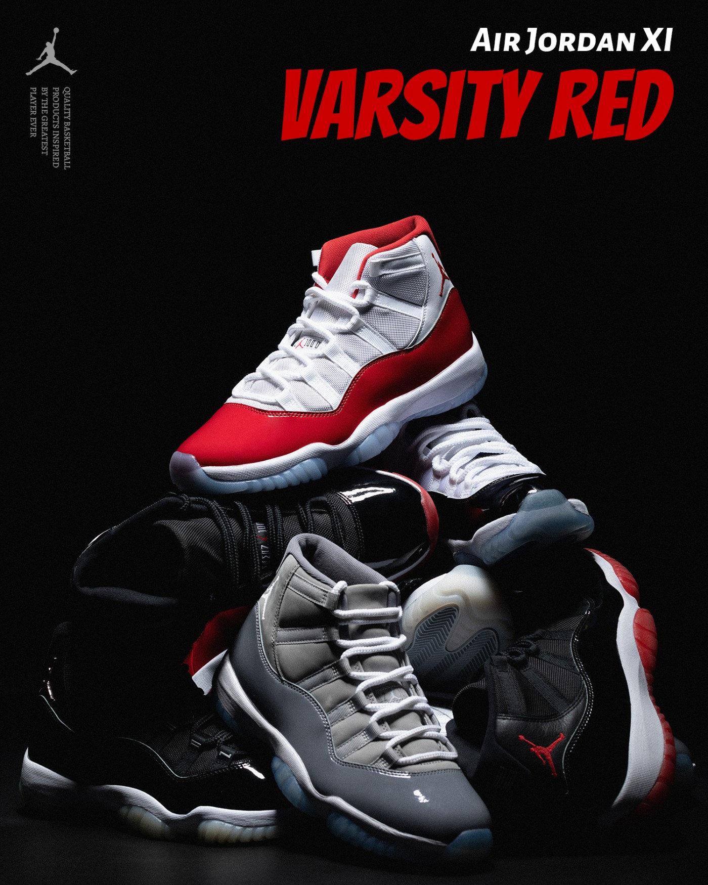 最近 Nike 官方也宣布了将在今年的 12 月 10 日发售一双全新的 Air Jordan 11 “Varsity Red”,虽然不像「黑红」、「康扣」那样经典,但要知道上一双低帮的「白红」Air Jordan 11 Low “Cherry” 市价依旧维持在 ¥3000 元左右(42.5 码),所以颜值方面绝对经得起考验。