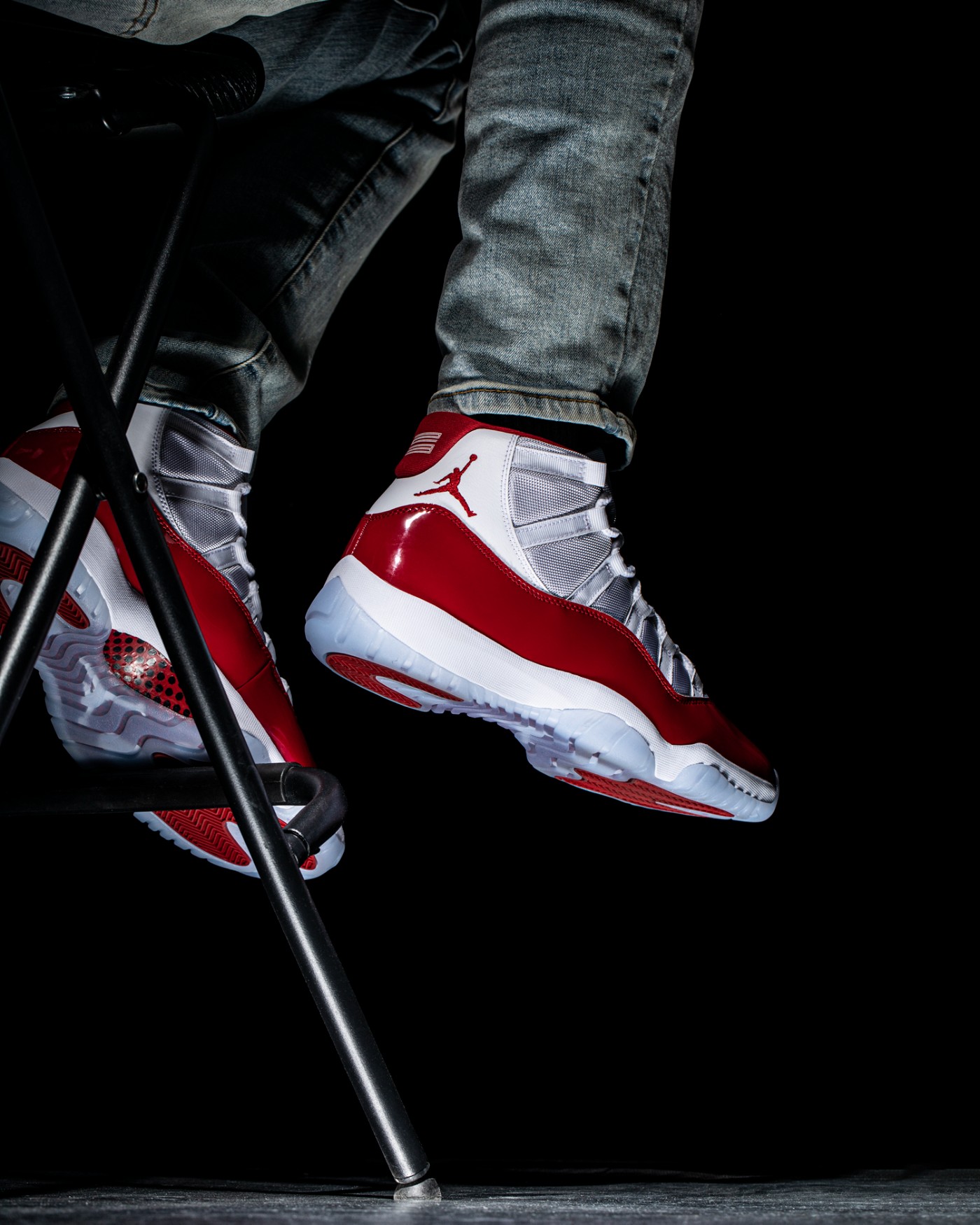 上脚后的颜值丝毫不用担心,毕竟在 Air Jordan 系列的鞋款中 AJ11 的搭配属性绝对能够排到前三名,再加上红白配色的高颜值真的无需多言。