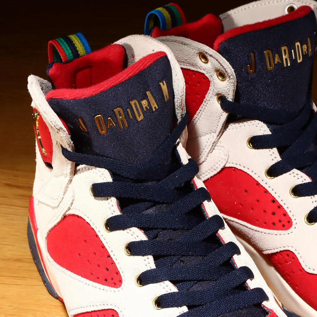 说会鞋子本身,整体设计灵感来自 1992 年乔丹获得的奥运金牌,配色方案致敬奥运配色 Air Jordan 7。