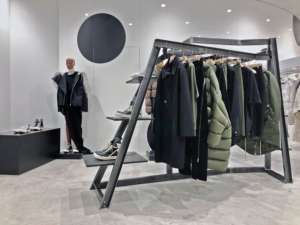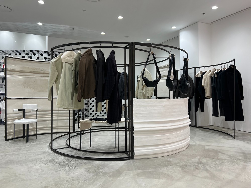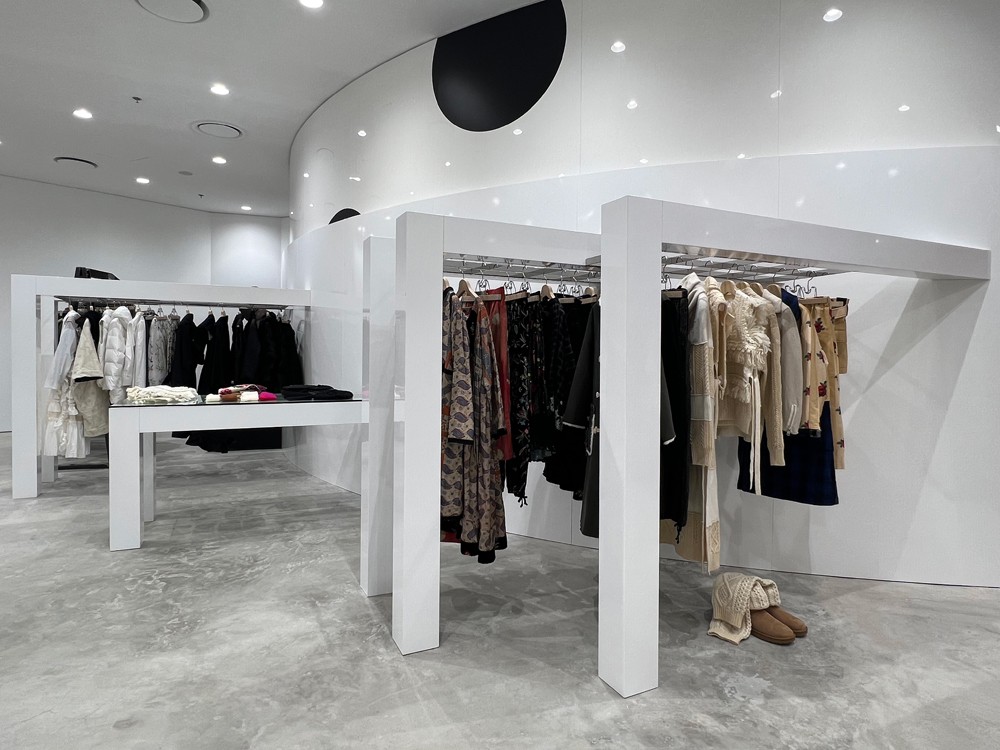一层进门后一座带有「New beginning」字样的 Elephant Space 装置映入眼帘,同时包含了有着鲜明设计风格的 COMME DES GARÇONS 和 Rick Owens 等多个品牌。