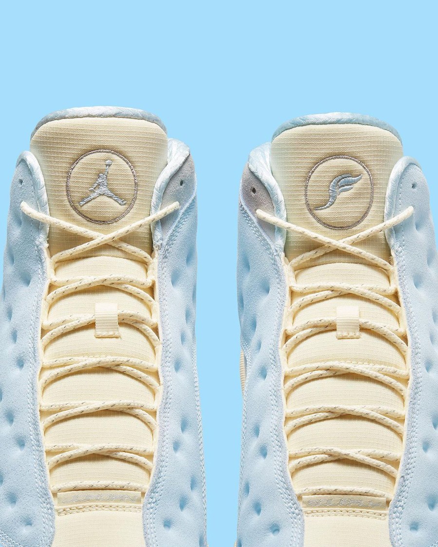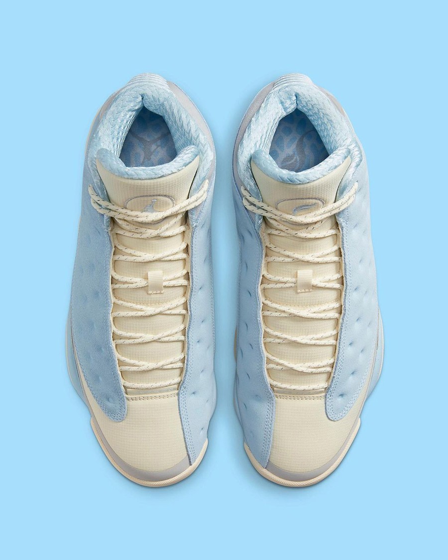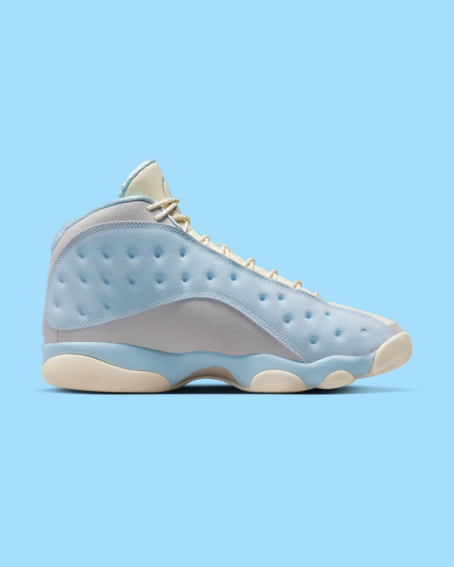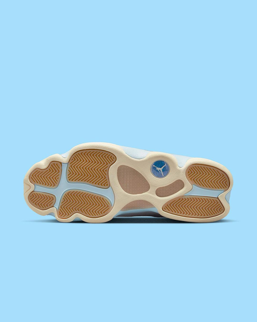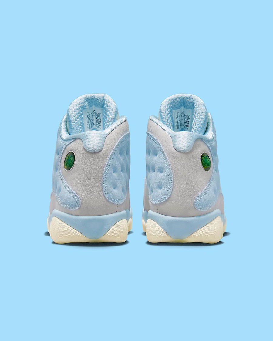 后跟带有 Air Jordan 13 传统的猫眼点缀,最后以生胶材质外底收尾,完善整体设计。