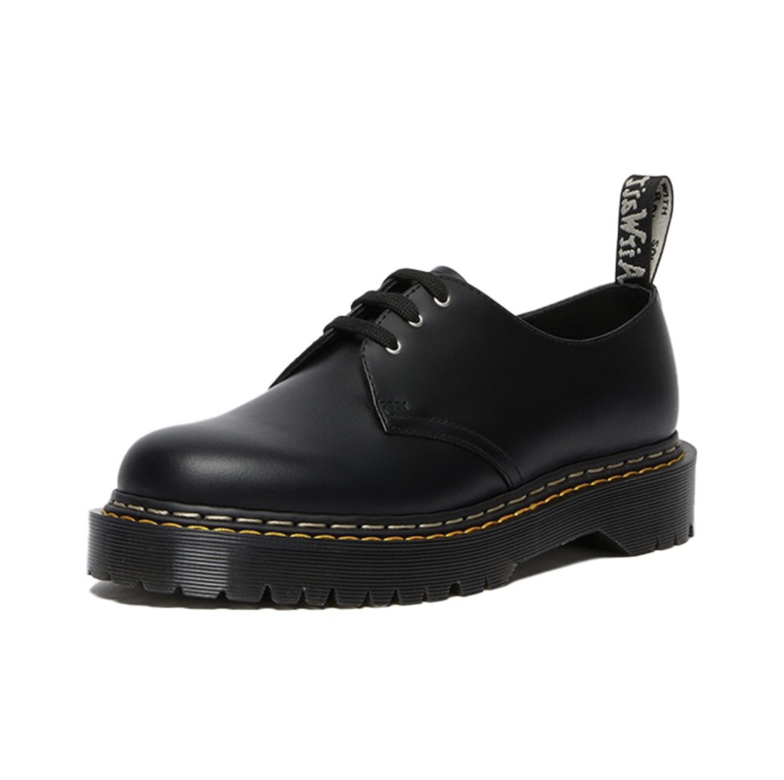 从鞋身黄、白双车线的设计就能分辨出这是 Dr.Martens x Rick Owens,女码市价将近三千人民币。