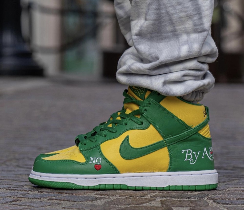 去年,Supreme 同样以 SB Dunk 鞋型带来过「巴西」Supreme x SB Dunk,惊喜的是虽然人气联名,不过市价大多徘徊在两千元左右。