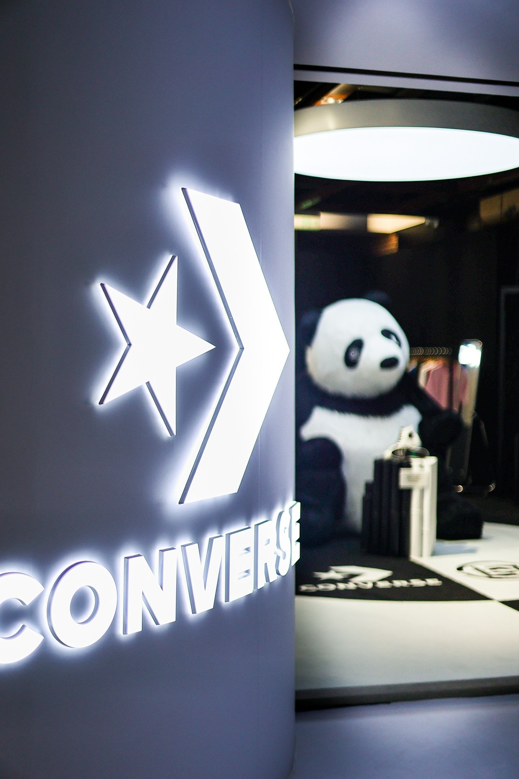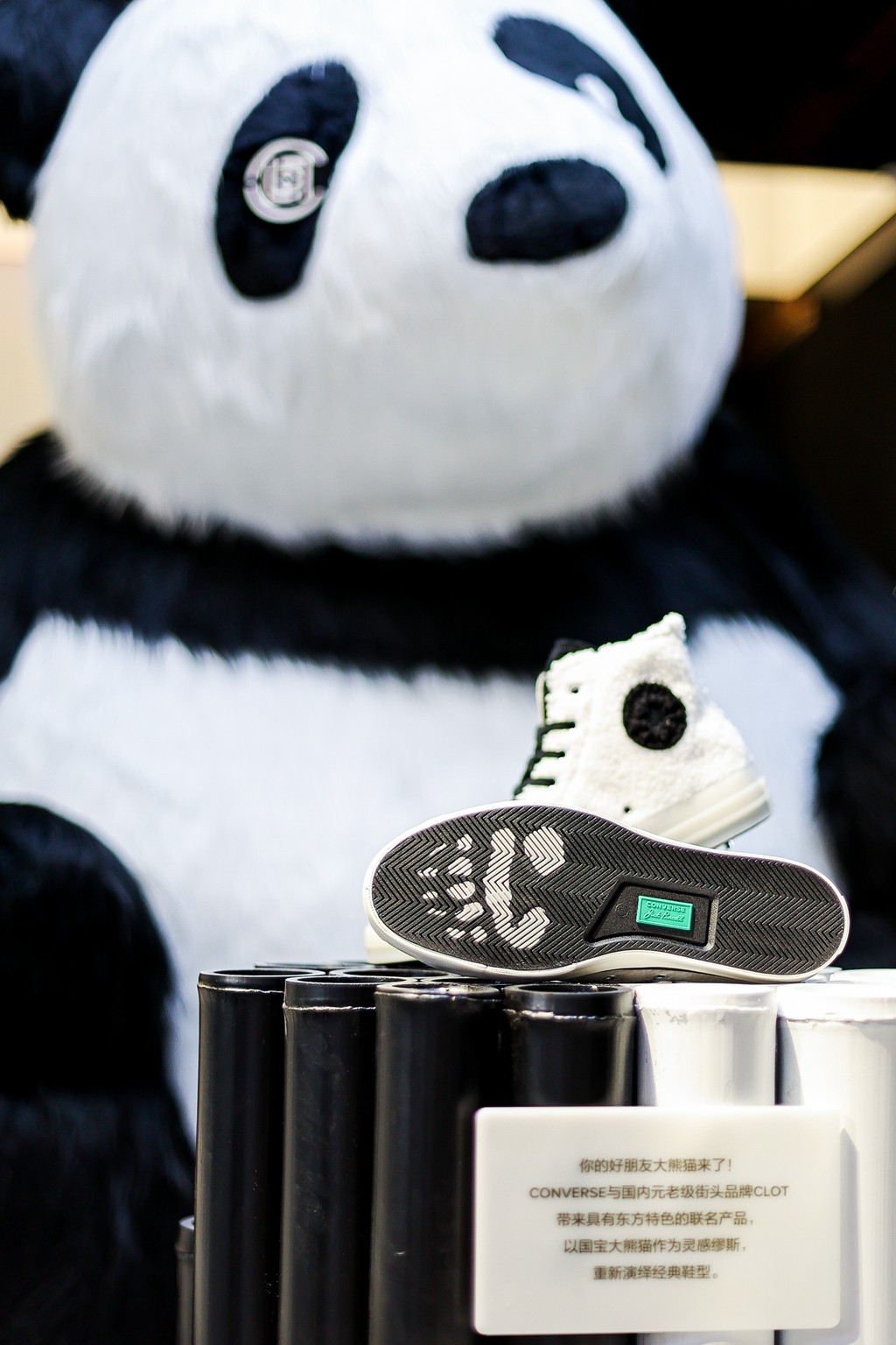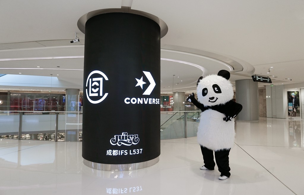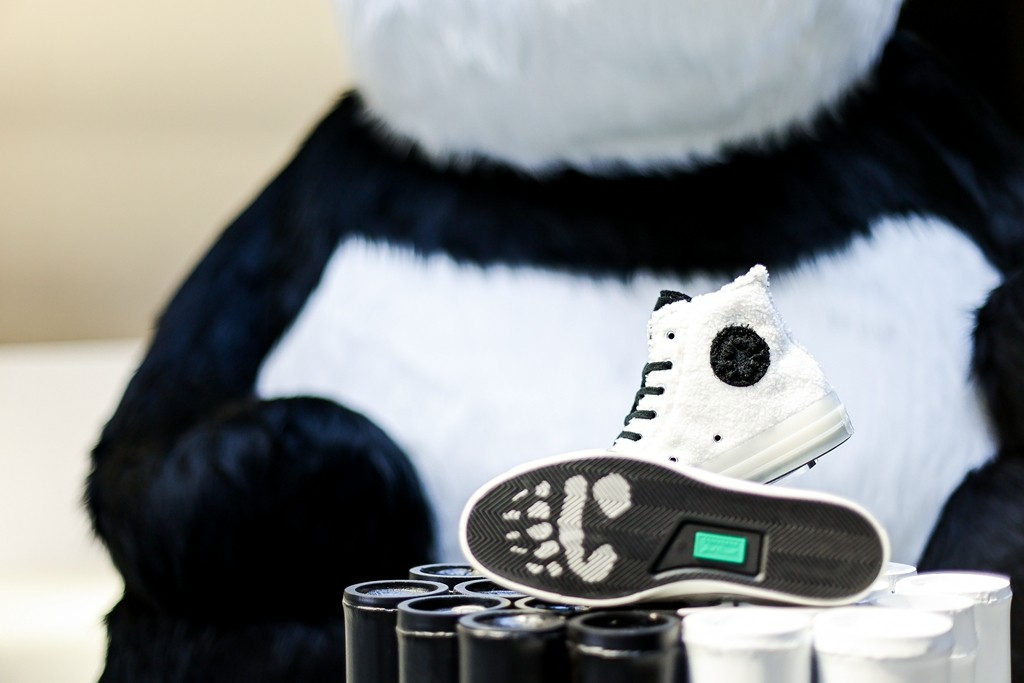 此次的联名鞋款在门口醒目的位置进行陈列,借此向中国的熊猫保护计划表示支持。