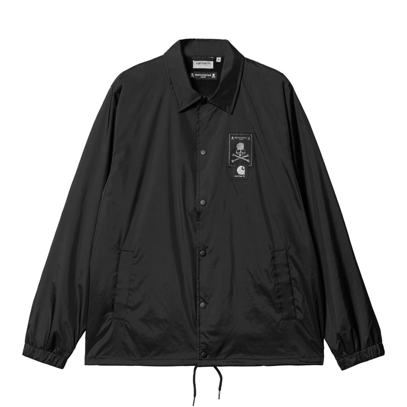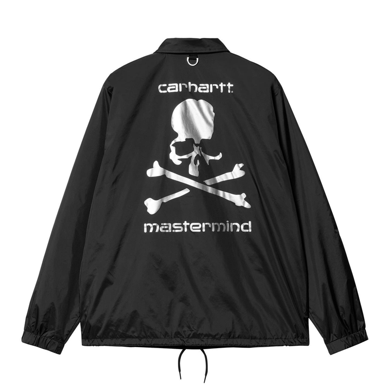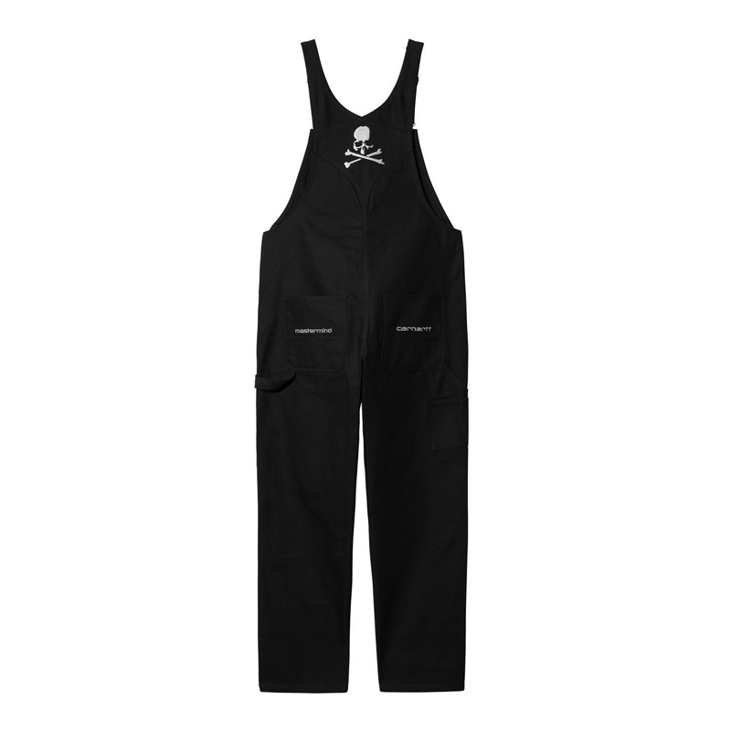 此次联名选择了 Carhartt WIP 的产品为基础进行设计,当中包含了工装背带裤、连帽卫衣、长袖 T 恤和教练夹克等单品,配色方案则是以 mastermind JAPAN 最爱的大面积黑色呈现,视觉效果格外炫酷。