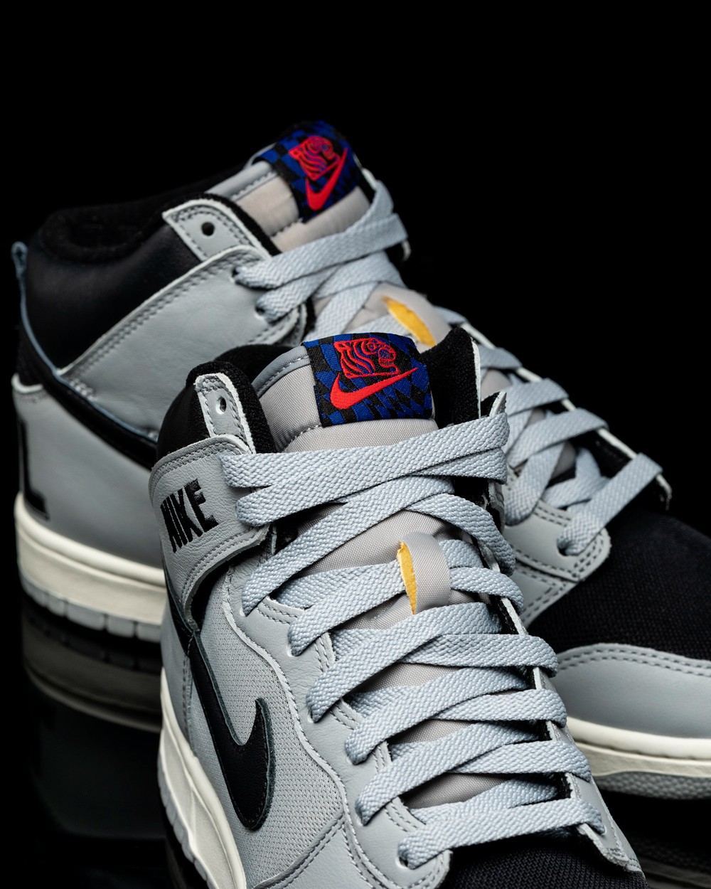 本次 Nike Dunk High x SOULGOODS 联名系列设计灵感来源于 80、90 和 00 年代的中国本土青年文化,以当时所风靡的篮球、音乐、艺术三种文化为主题进行创作。