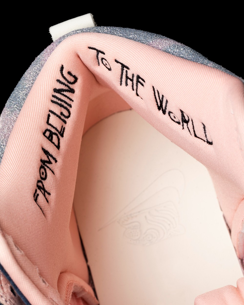 鞋帮内衬暗藏 “FROM BEIJING TO THE WORLD(从北京到世界)”,搭配皮质鞋垫,质感与细节拿捏的都相当出彩。