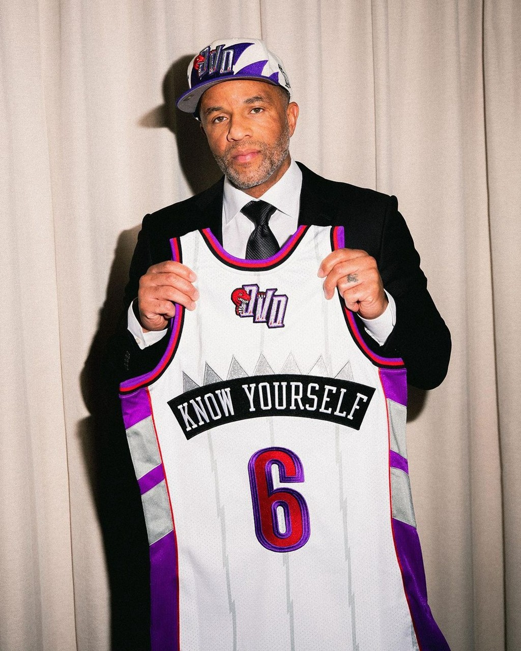 而他旗下的品牌 OVO 经常会和猛龙队进行合作,比如此前就曾推出黑金配色的城市版球衣。