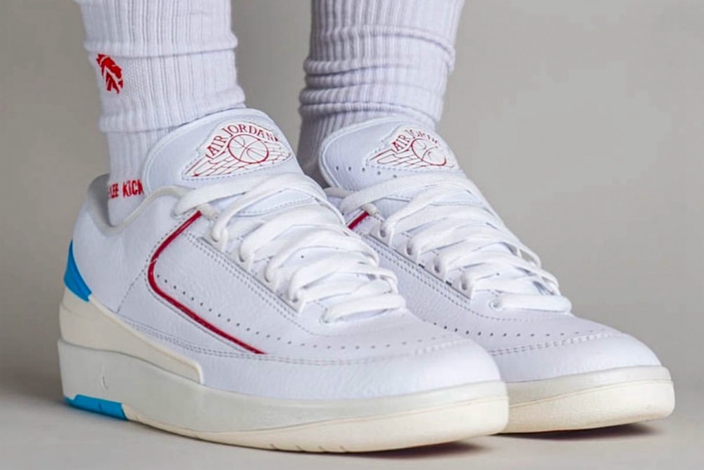 近日,此前曝光过的「北卡芝加哥」 Air Jordan 2 Low 释出实物上脚图。