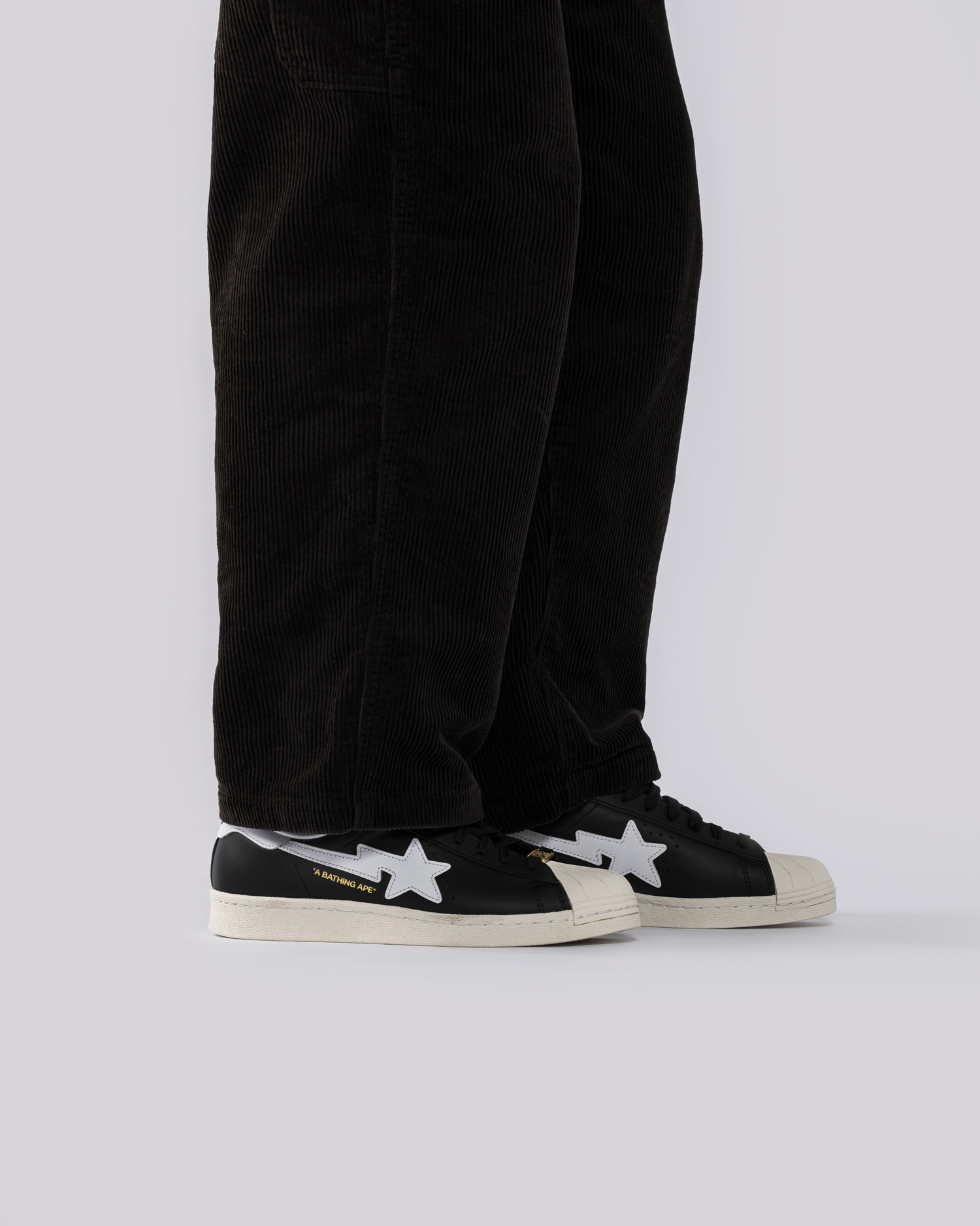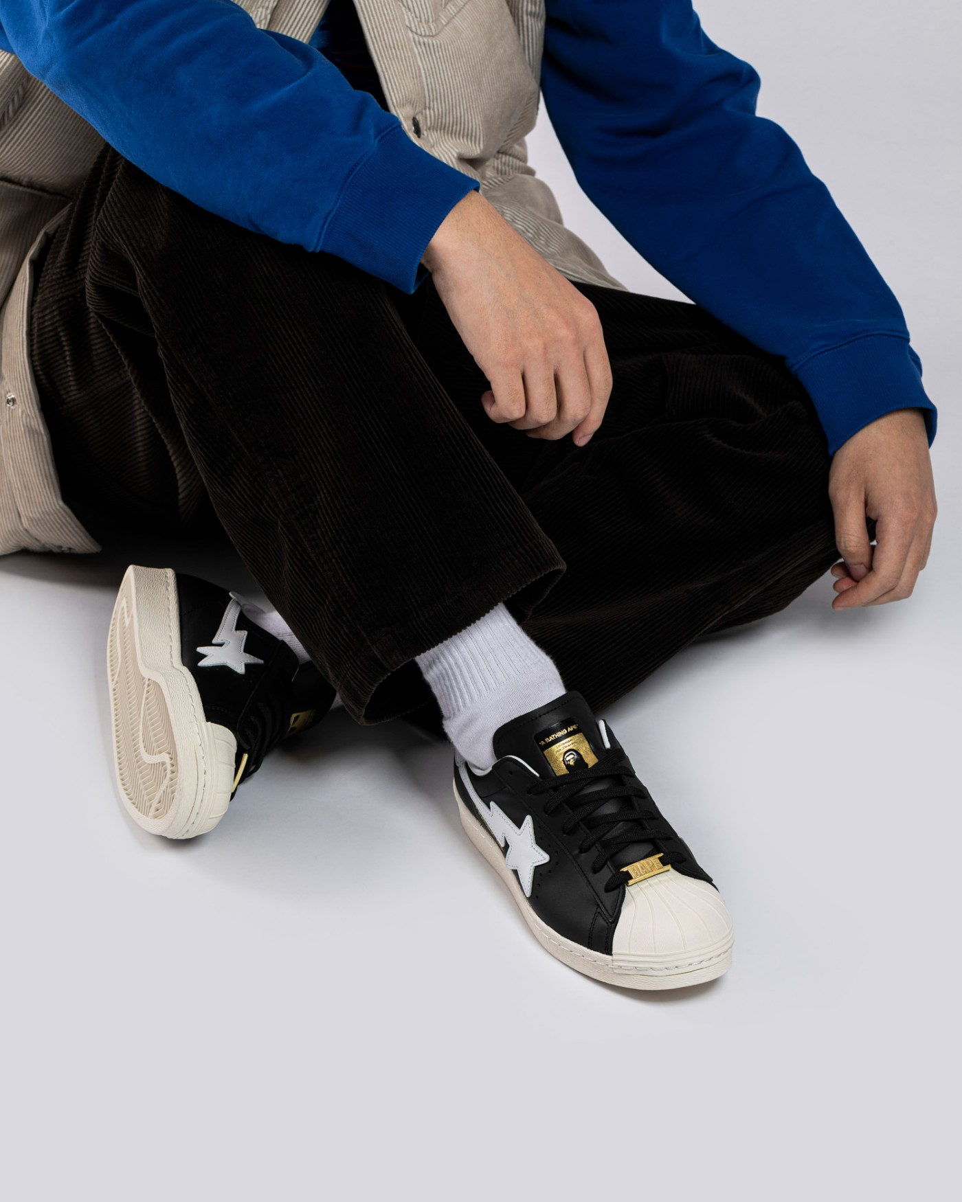 配色方面,此次并没有采取 BAPE® 一贯的花哨迷彩以及鲜艳撞色设计,反而利用简单的黑白搭配,来迎合贝壳头的复古气质。