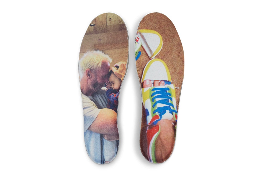 甚至在鞋垫上还印有 Sandy 和孩子的亲密合影,将他生前的美好瞬间永远定格在这双鞋上。