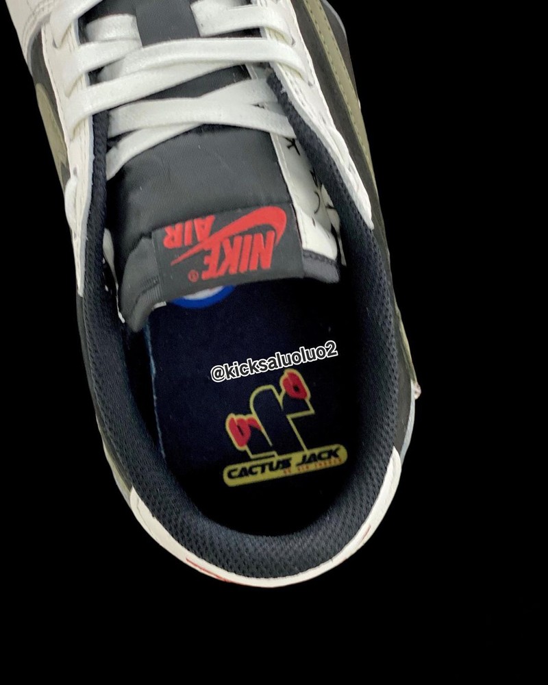 鞋跟分别用红色绣有 Cactus Jack 的鬼脸 Logo 和飞翼 Logo,鞋垫上也可以看到专属于 Travis Scott 仙人掌图案,无一不在彰显着联名身份。