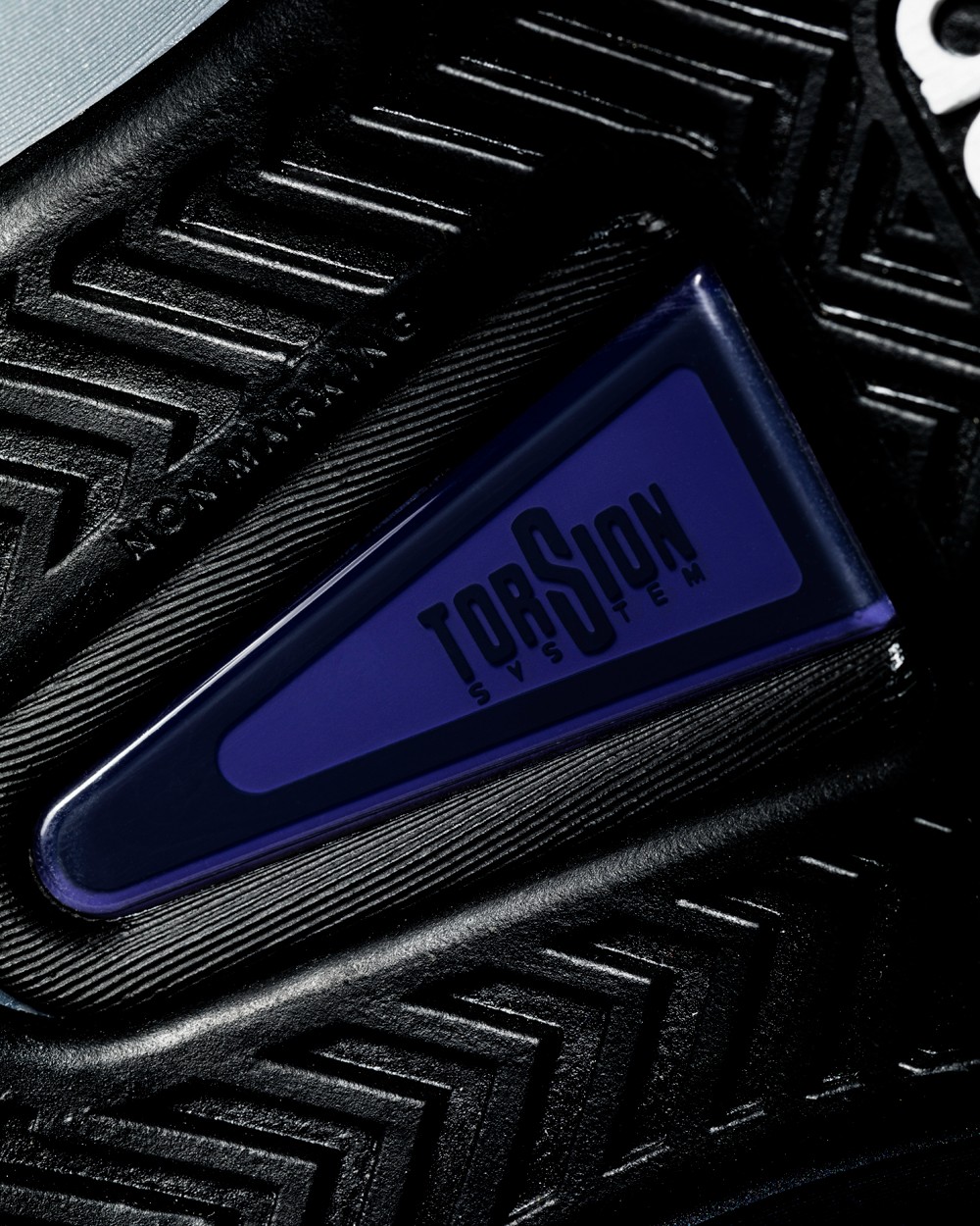 足弓还加入了一块暗紫色 TPU,这也是 adidas 当年最拿手的抗扭转系统。