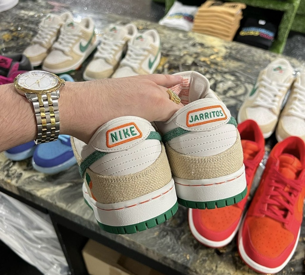 什么食品、饮料公司都能联名,就比如最近刚曝光的 Jarritos x Nike Dunk SB Low。