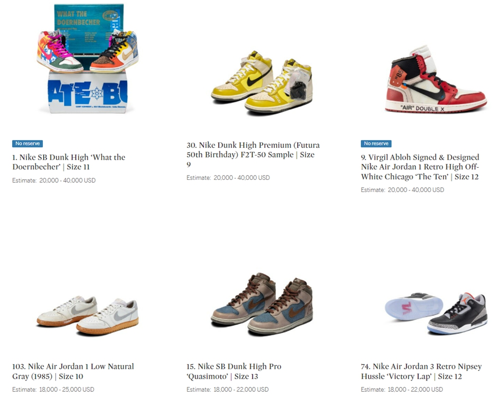 除此之外,像 “镇店之宝” UNDEFEATED x Air Jordan 4、LV x Air Force 1 Low、“回到未来” Nike Mag 这样的鞋款,都属于苏富比的常客了。