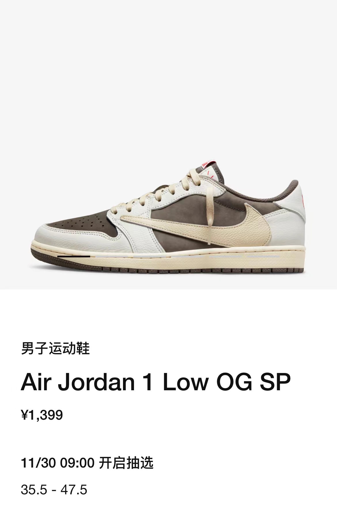 「倒钩 3.0」Travis Scott x Air Jordan 1 Low 成人版将于明天上午 9 点正式在 SNKRS 中国 APP 发售,发售方式依然是 DAN 模式(15 分钟登记抽签),对于所有小伙伴来说还是相对公平的。