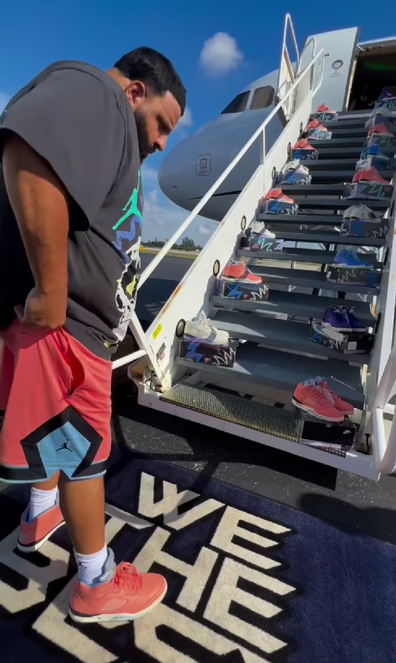而除了国内,国外明星的上脚同样精彩,「北美景甜」DJ Khaled 近乎疯狂的在自己的私人飞机上展示自己的全新联名 Air Jordan 5。