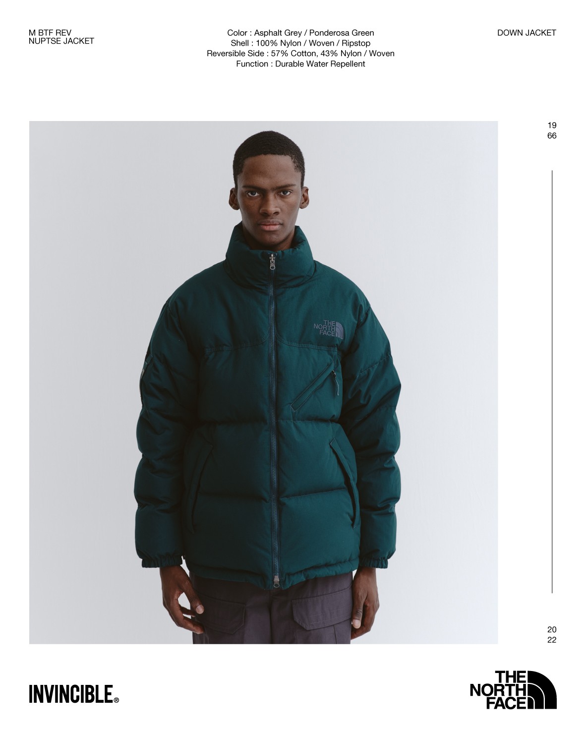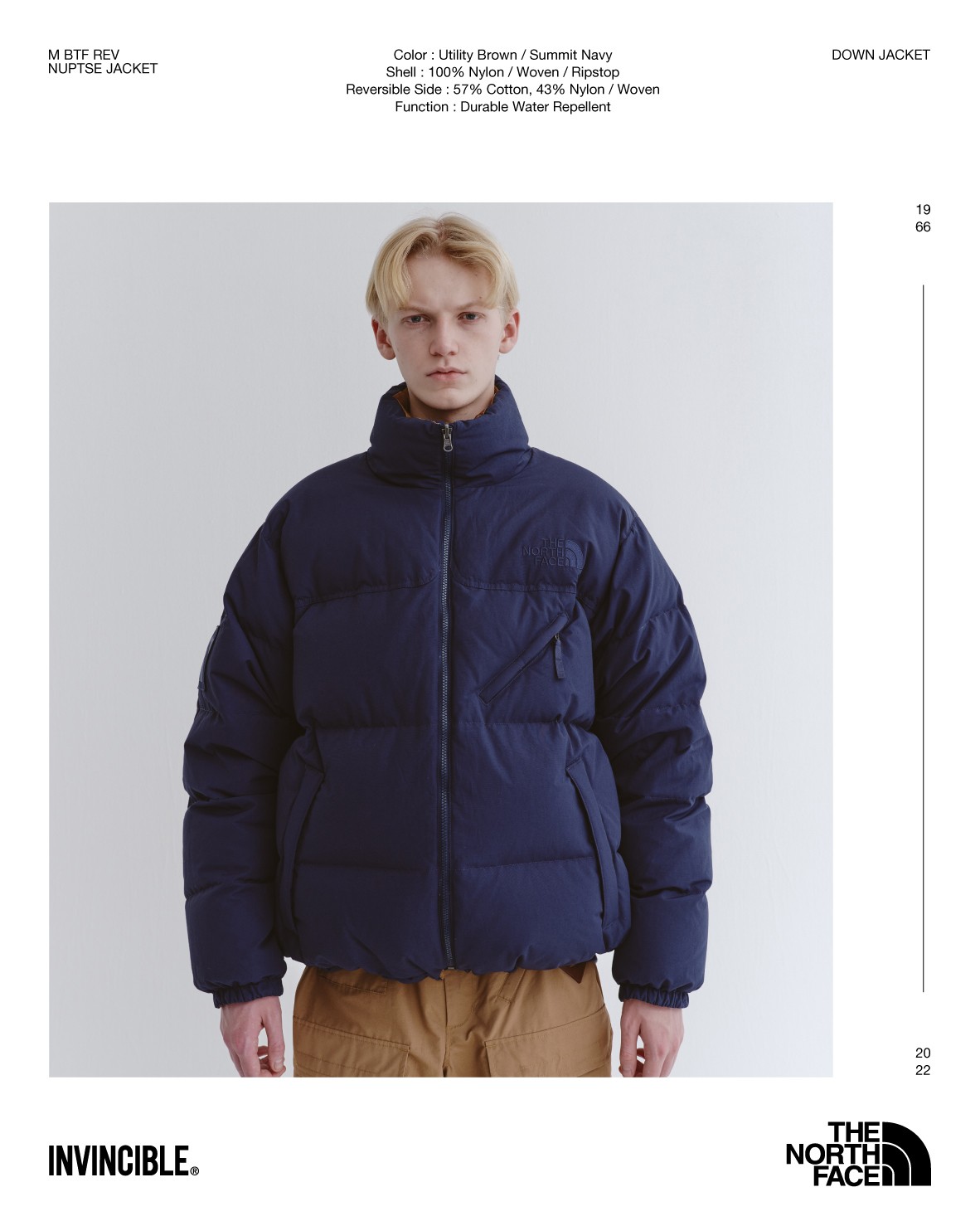 在承袭经典 Nuptse 羽绒服的基础上,加入了双面可穿的机能性设计。