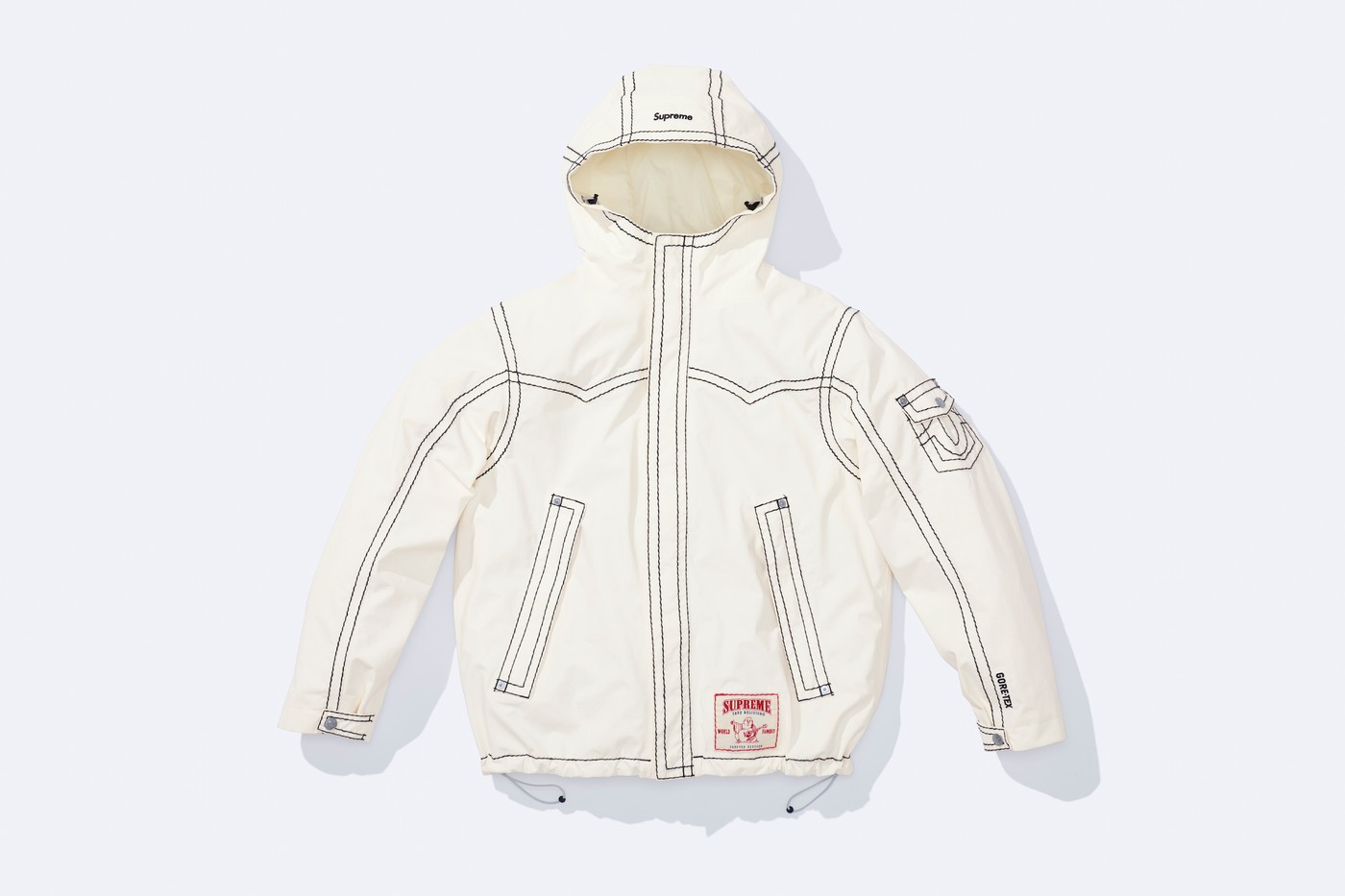 双方此次合作共带来具有户外机能属性的 GORE-TEX 外套、拉链帽衫、裤装和骑兵帽等单品。