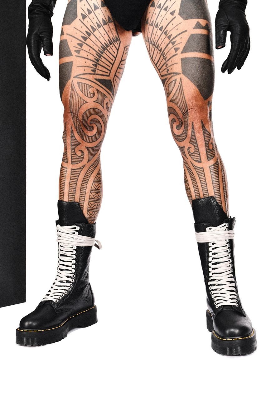 最大的亮点就是以五角星形结构和绷带式缠绕两种造型呈现的鞋带系统,让人一眼就能认出这是 Rick Owens 的联名款。