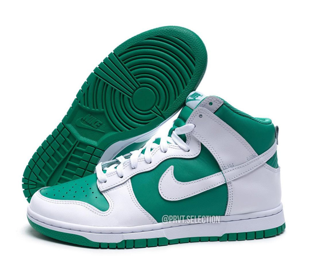 近日,一款全新 Nike Dunk High “Pine Green” 释出实物图。