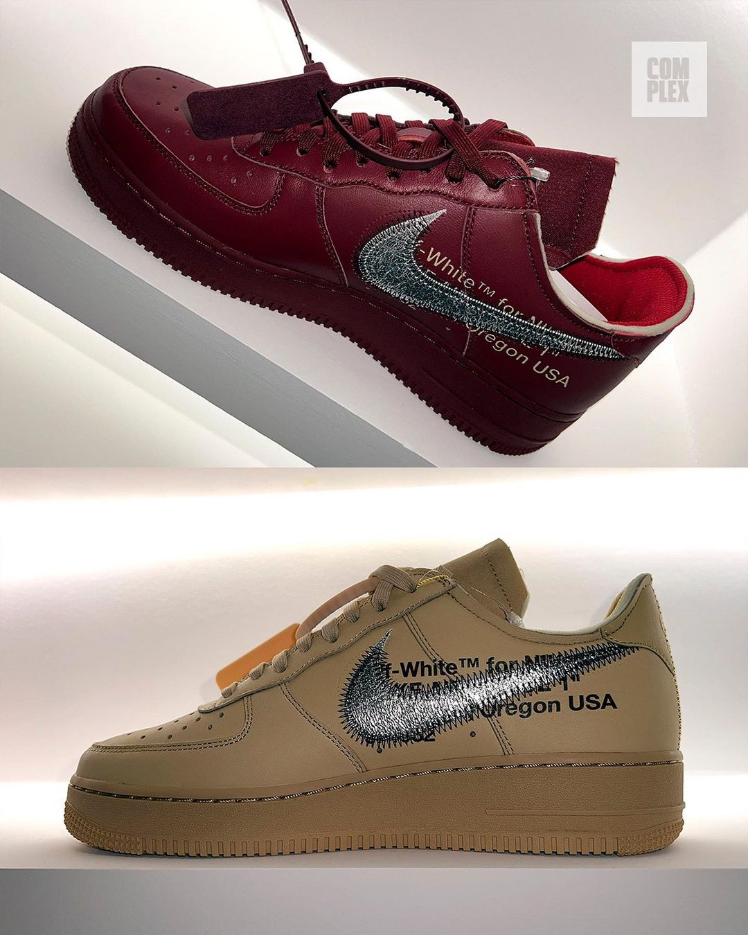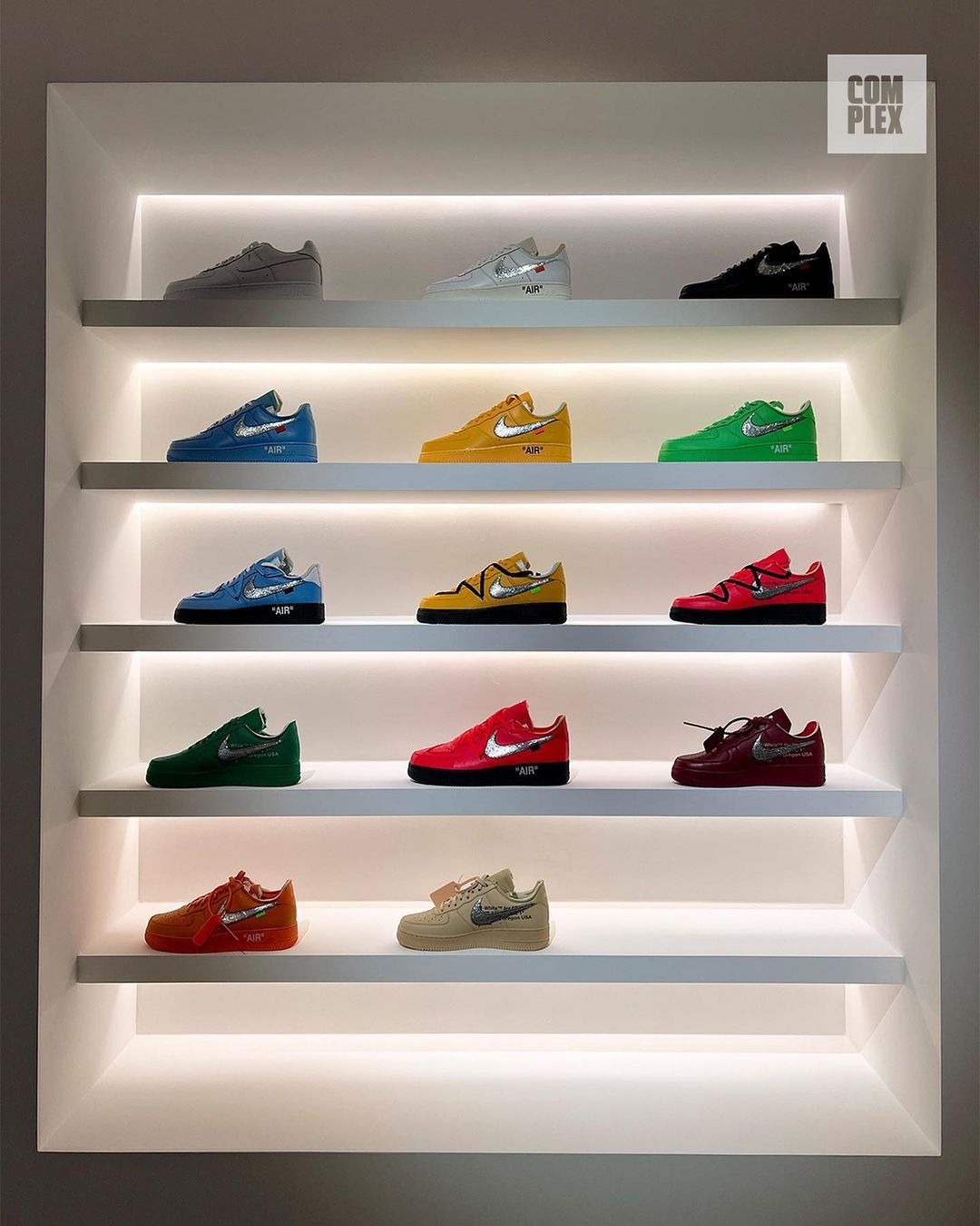 从这张图还能看到两个细节,一个是鞋带可以隐约看到 Virgil 风格字体,此外通过后跟可以判断出这是双 Air Force 1。