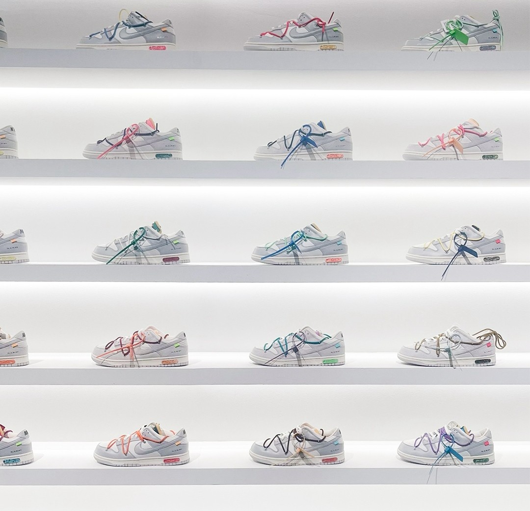 最具视觉冲击力的当属 OFF-WHITE x Nike Dunk Low “The 50” 系列,让我们更直观的感受到 Virgil 的 3% 理论。