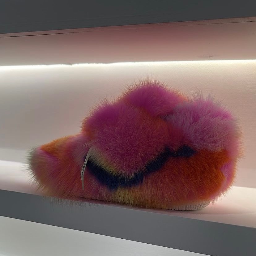 这双「长毛」的新鞋可从来都没曝光过,配色方面用五彩斑斓来形容一点都不为过,可以看到鞋侧有黑色线条勾勒,不知道是不是在模仿 Nike Swoosh。