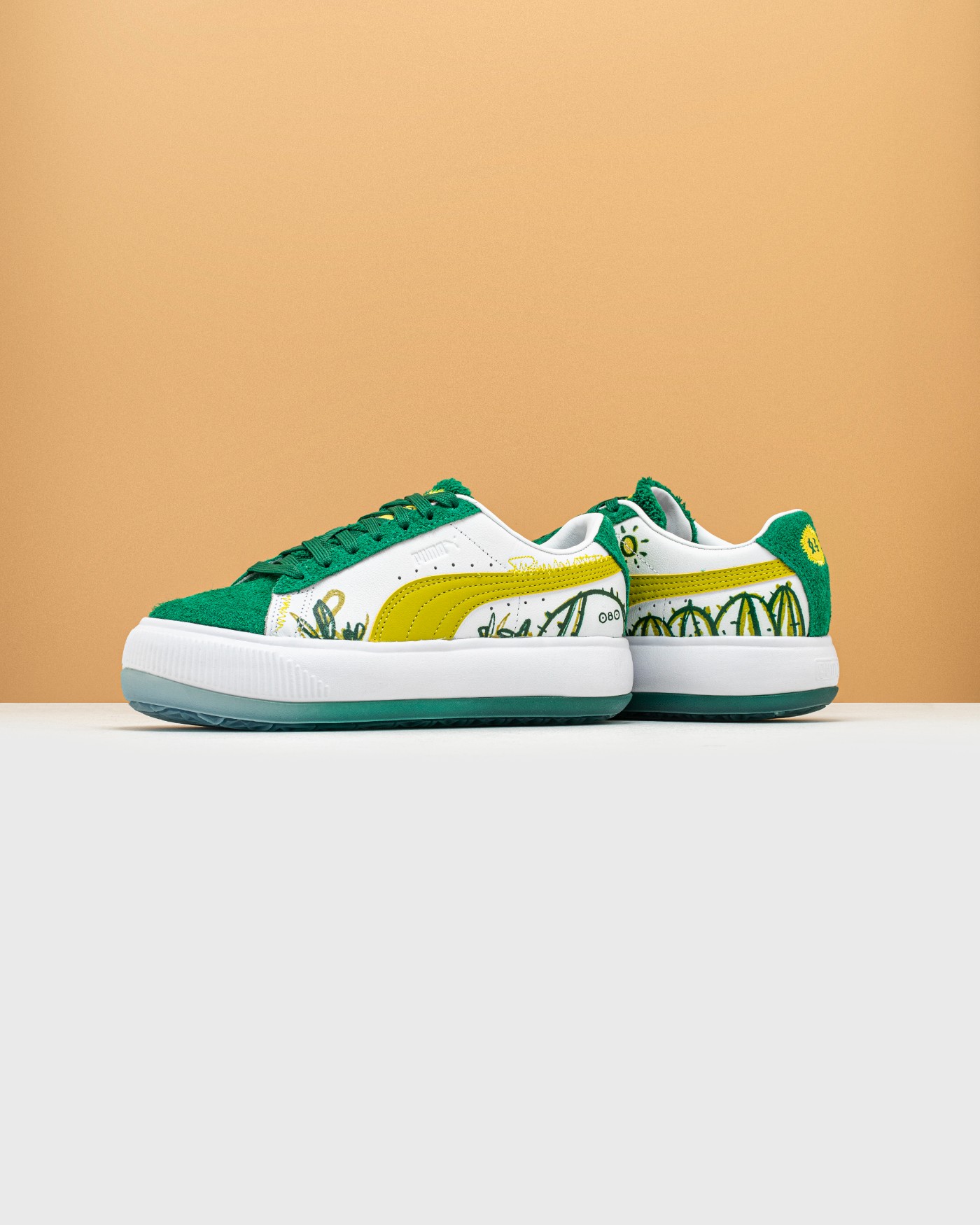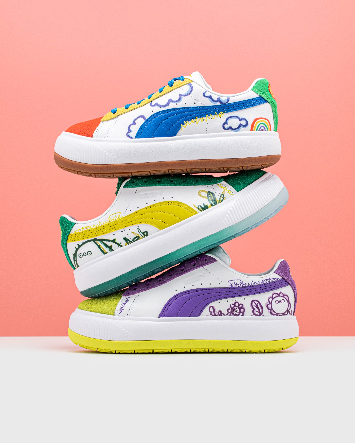 本次均采用艺术家本人最喜爱的 PUMA SUEDE MAYU 鞋款为蓝本设计。