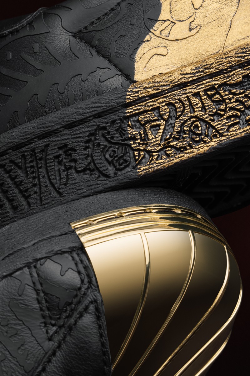 最后以带有激光雕刻了韩美林先生十二生肖专属的印花图案的中底收尾,完善整体造型设计。