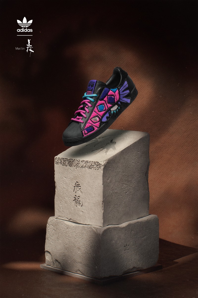 结合生肖文化中的六合概念,第一次推出了 12 双特别联名生肖系列,并将其呈现在了经典的「贝壳头」Superstar 上。