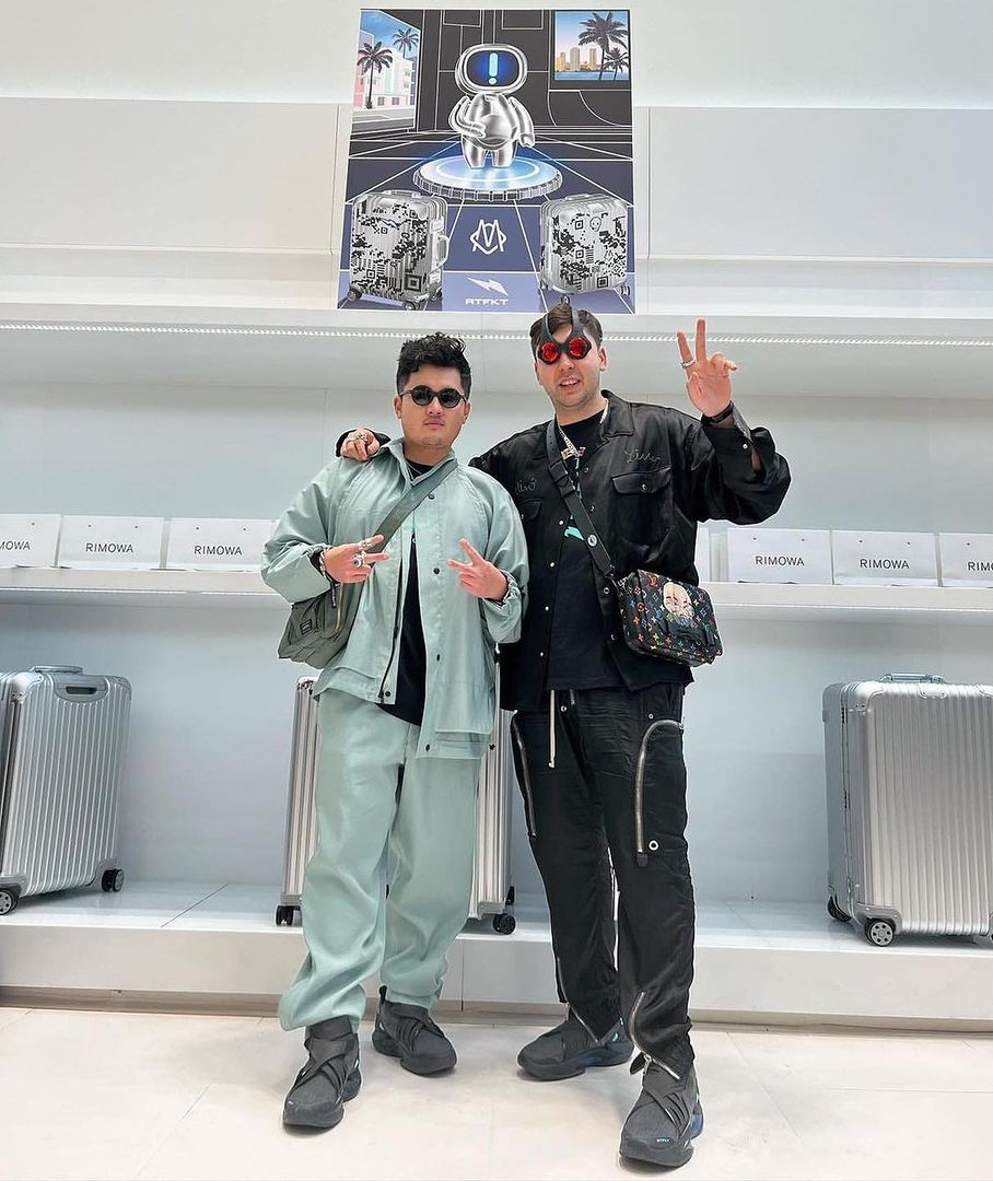 除了这款银灰色装扮,还有一款纯黑色得到了 RTFKT 联合创始人的上脚。