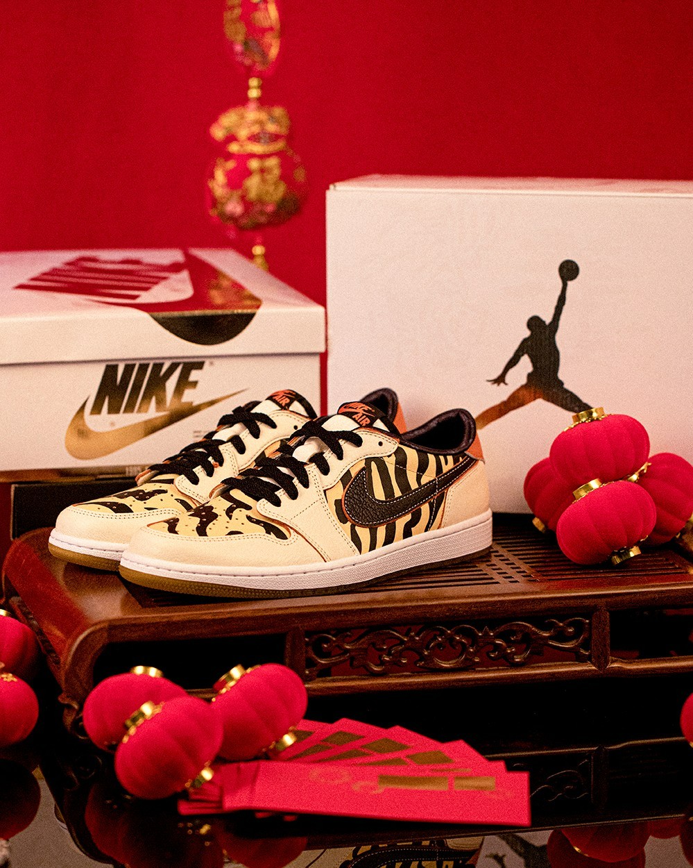 红色鞋垫配合上特别设计的 Jumpman Logo 造型,释放浓浓的年味儿。