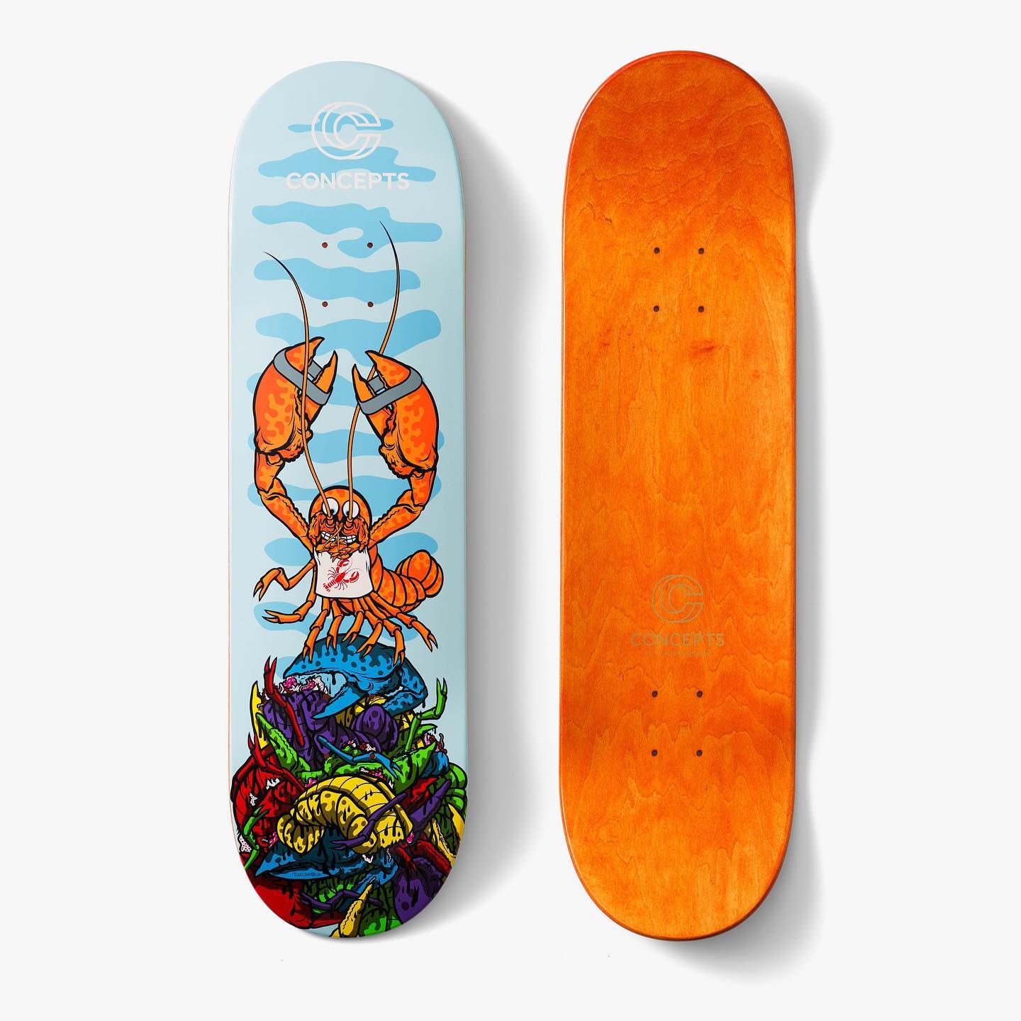 除此之外,官方还特地邀请曾创作过「咳嗽草莓」等图案的知名滑板插画师 Todd Bratrud,设计了一组橙龙虾板面涂装,仅在 Concepts 店铺及线上指定渠道发售。