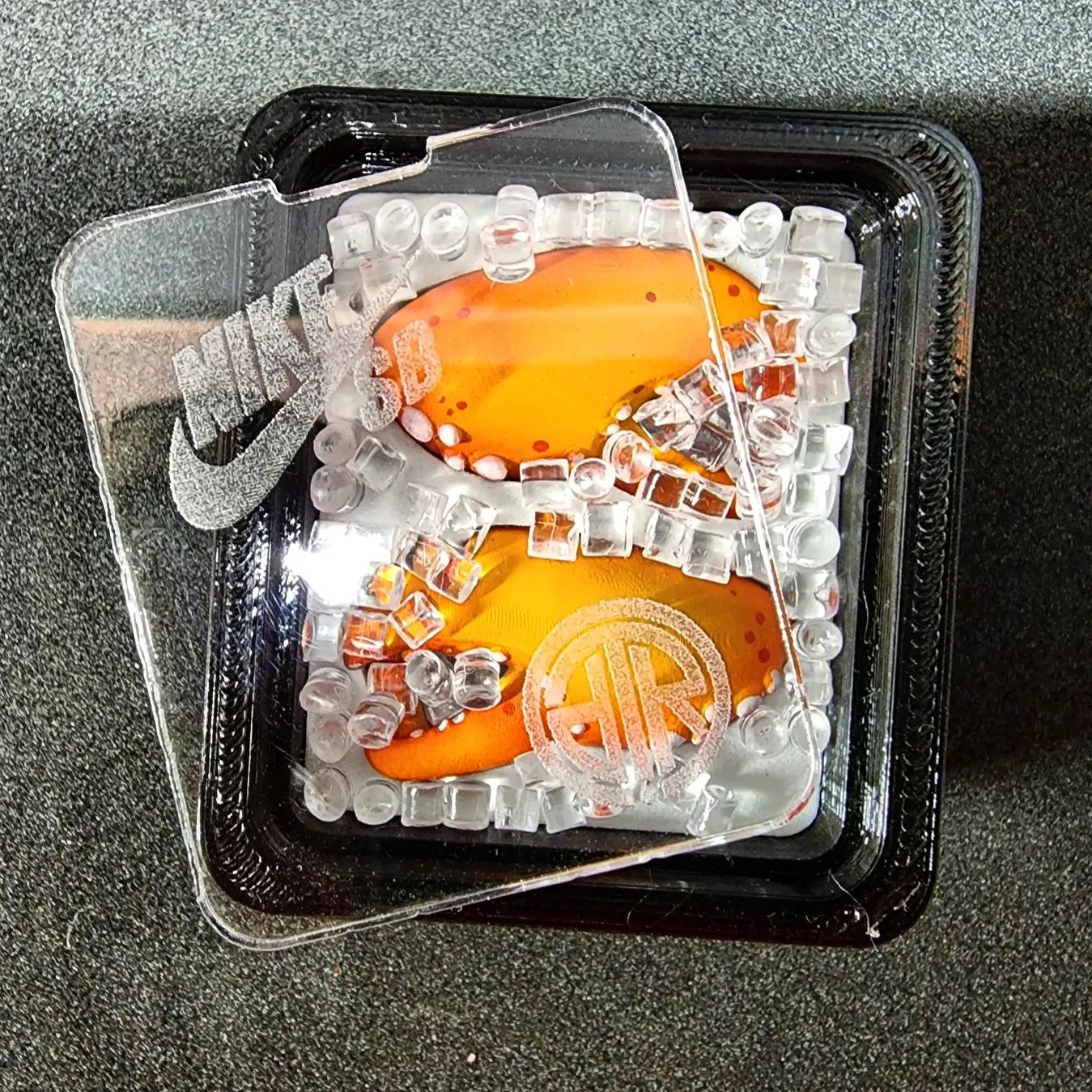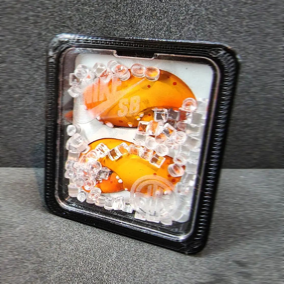 而玩家也没闲着,海外球鞋周边 DIY 团队 T.RhinesDesigns 特别制作了 50 套橙龙虾潮玩。