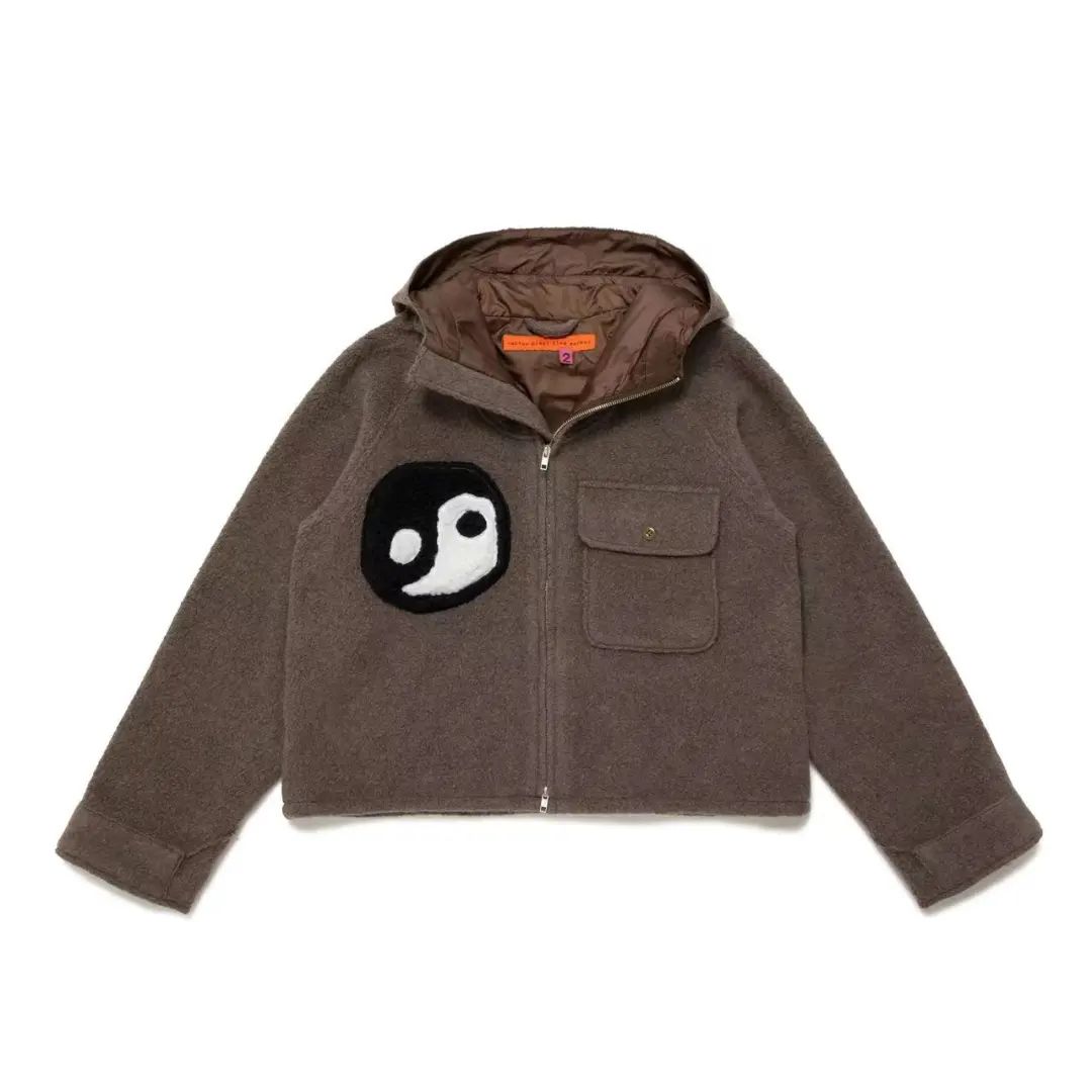 羊毛外套在胸口位置点缀熟悉的太极图案,打造出属于 CPFM 品牌的独特风格,发售价为 ¥77000 日元,约合四千人民币。