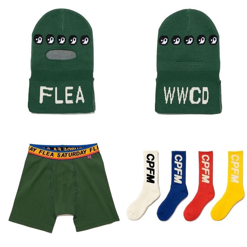 服饰单品涵盖羊毛外套、夹克、卫衣、T 恤,工装裤,以及头套、平角短裤、袜子等配件。